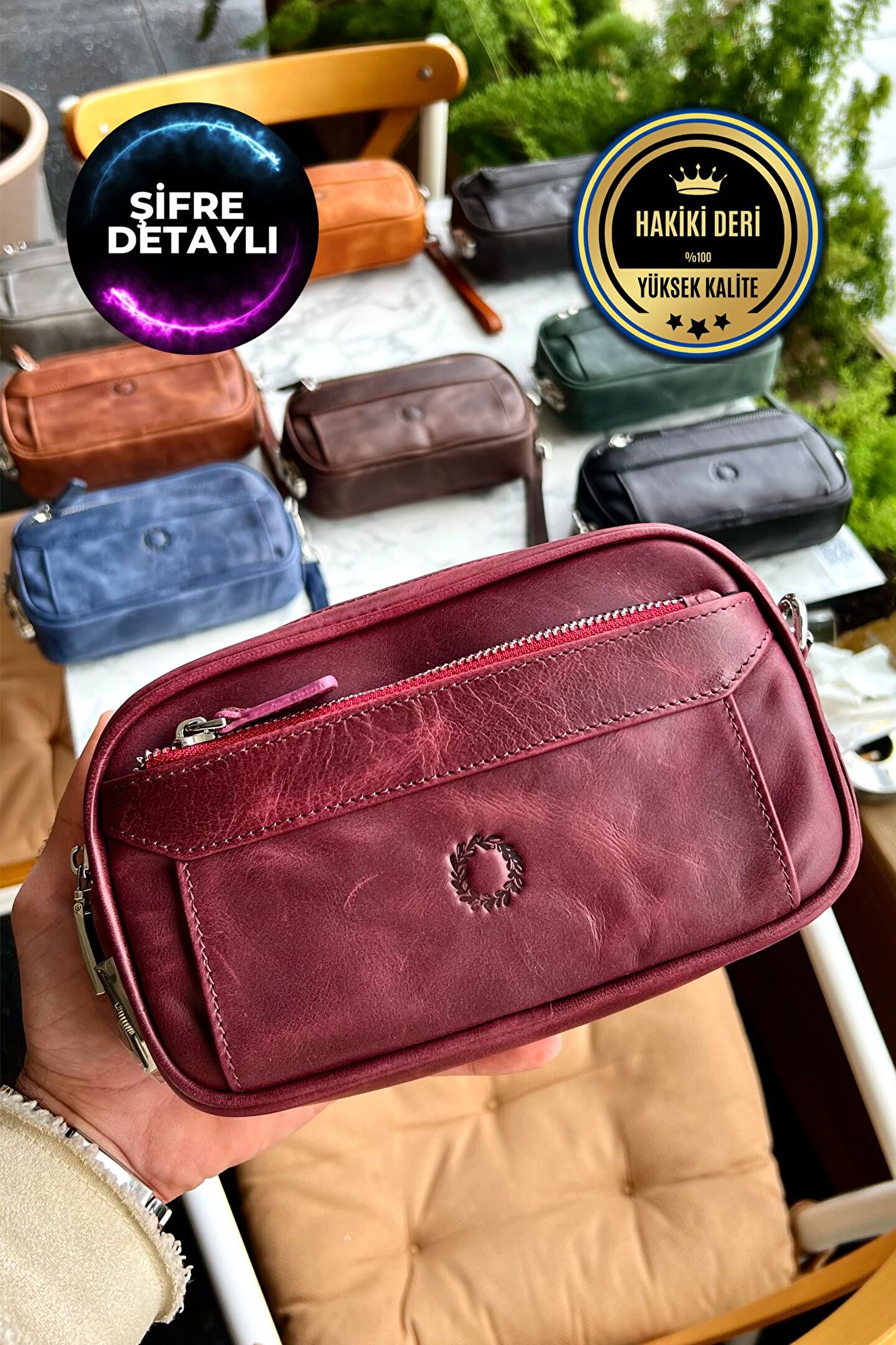 Costinel Antik Bordo Hakiki Dana Derisi Şifreli El Çantası