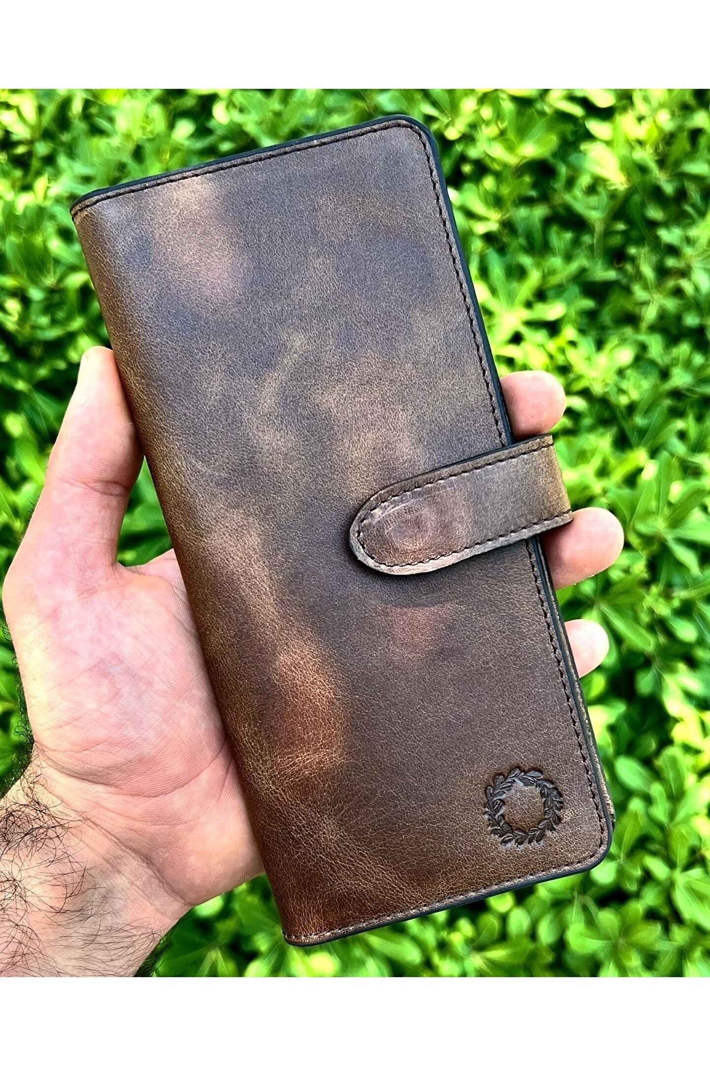 Creen Antik Kahve Gerçek Hakiki Deri Telefon Cüzdanı Unisex (ERKEK-KADIN)