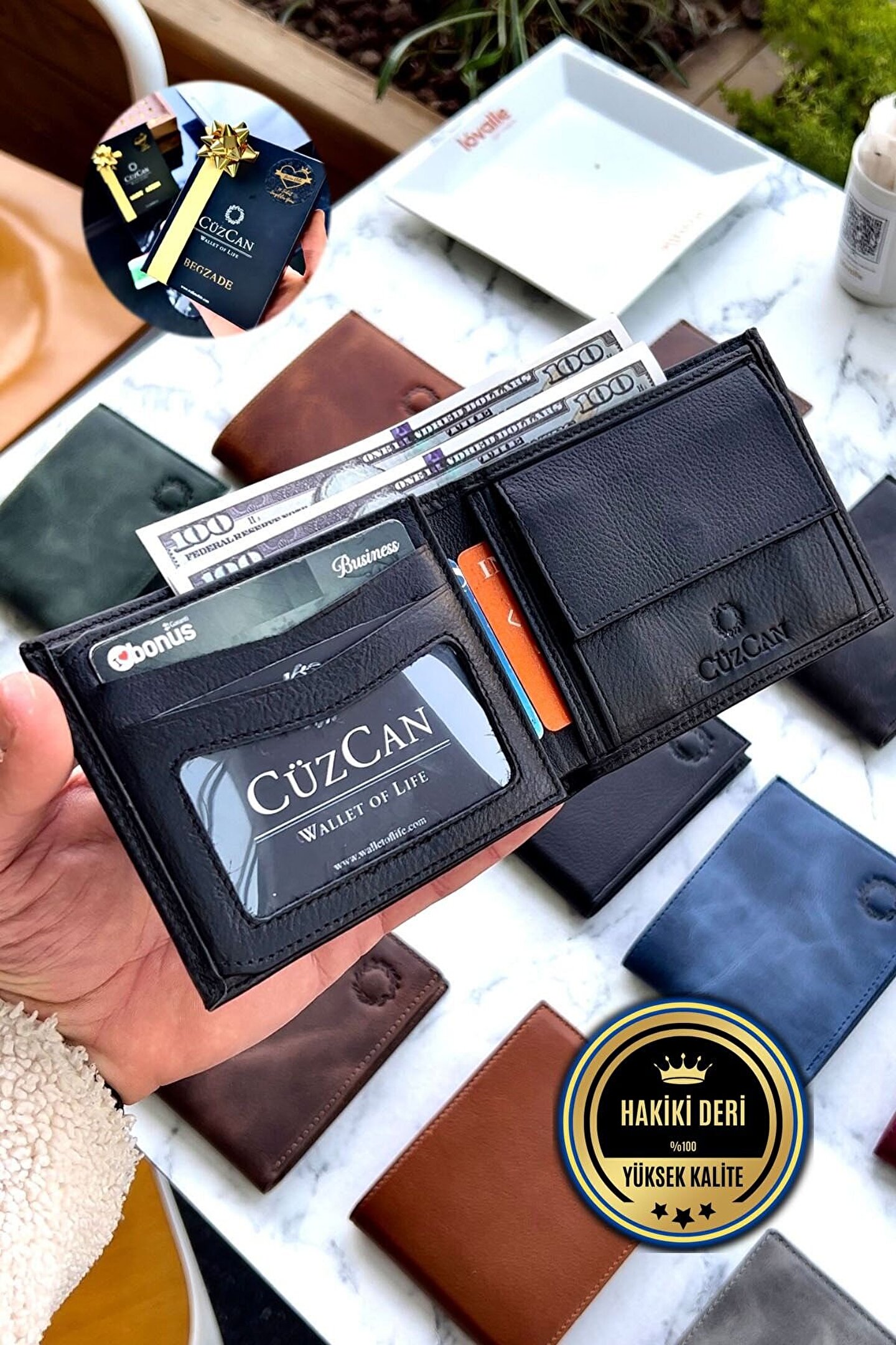 Fireppo Siyah Hakiki Deri Erkek Bozuk Para Bölmeli Cüzdan Isme Özel Baskı( Deri Anahtarlık Hediyeli)