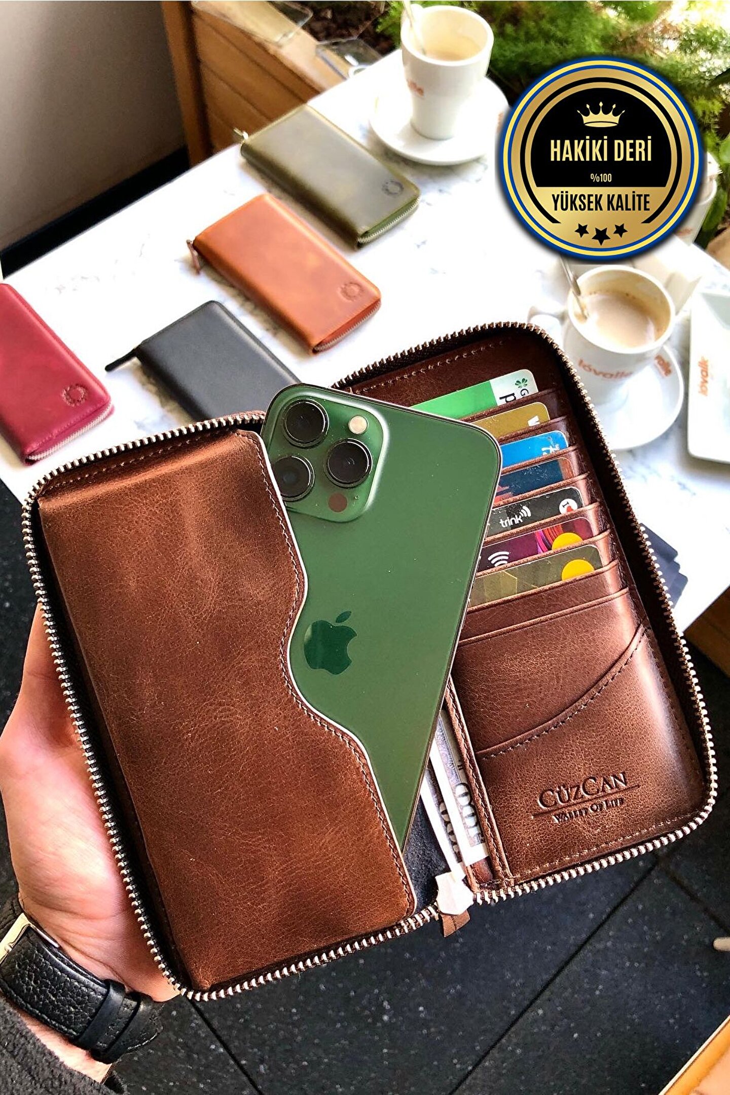 Leo Antik Kahve Unisex Hakiki Deri Telefon Bölmeli Cüzdan