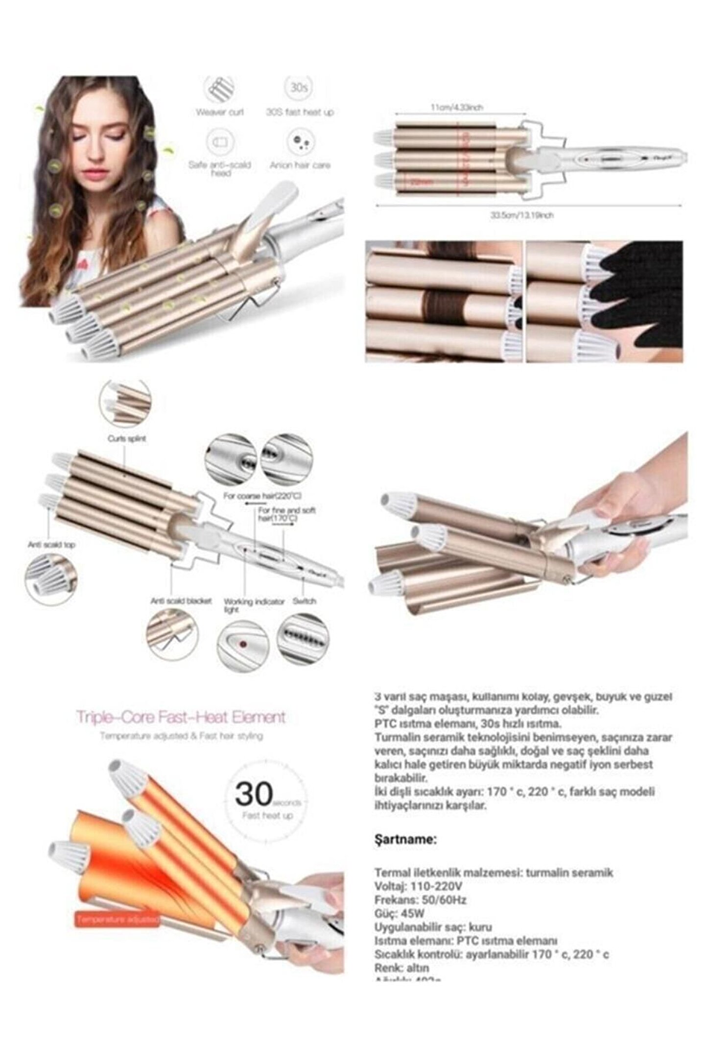 CVS DN 7309 SAÇ ŞEKİLLENDİRİCİ WAG MAŞASI ÜCRETSİZ KARGO Hem ıslak hem kuru saçta kullanılabilir 360 derece dönebilen kablo Hızlı ısınma ve kullanım esnasında sıcaklık koruma Özel ısıtıcı teknolojisi Anında etki kolay kullanım Isıya dayanıklı gövde Ergonomik ve estetik tasarım Hızlı güvenli ısıtma sistemi AC 220-240V - 50-60Hz / max. 50 Watt