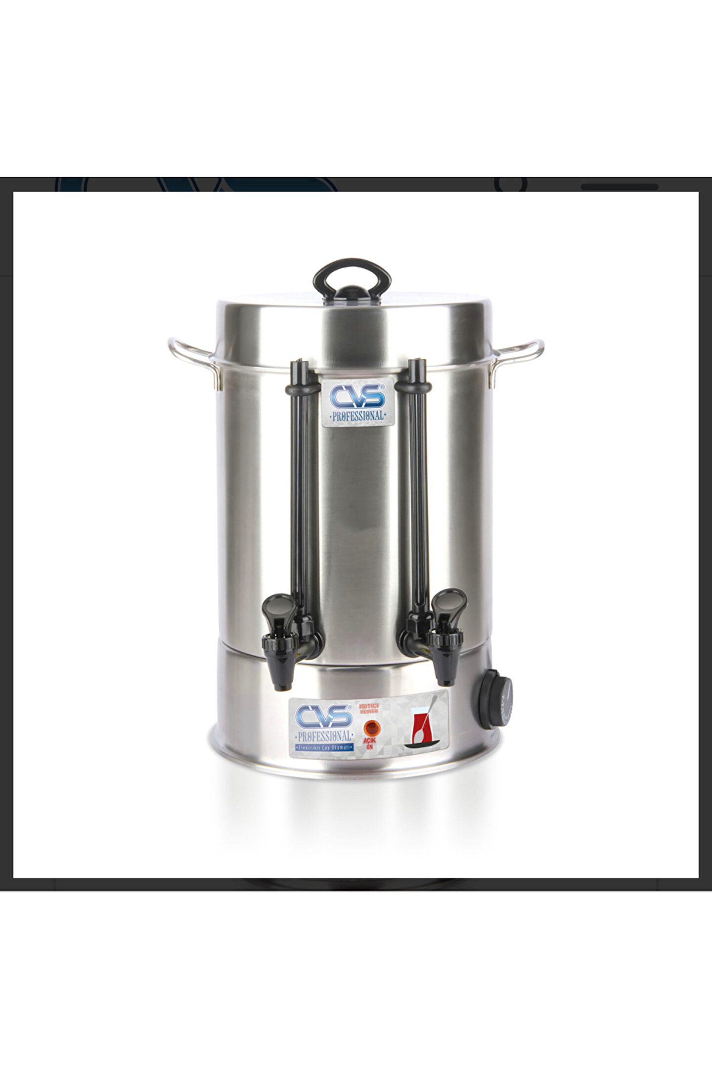 CVS Dn 91110 Profesyonel 250B Çay Makinesi Paslanmaz çelikten üretilmiştir.; • Çay lezzetinin uzun süre bozulmamasını sağlar.; • Toplu tüketim için uygun kullanım sağlar.; • Otomatik ısı kontrol elemanı sayesinde tasarruflu.; • Hijyenik ve uzun ömürlü.; • Ergonomik tutma kulpu.; • Gün boyu bayatlamayan çay demi ve sıcak su verir.; • Paslanma yapmayan tüp rezistanslıdır.; • Damlatmayan sıcak su musluğu.; • Otomatik ayarlı termostat