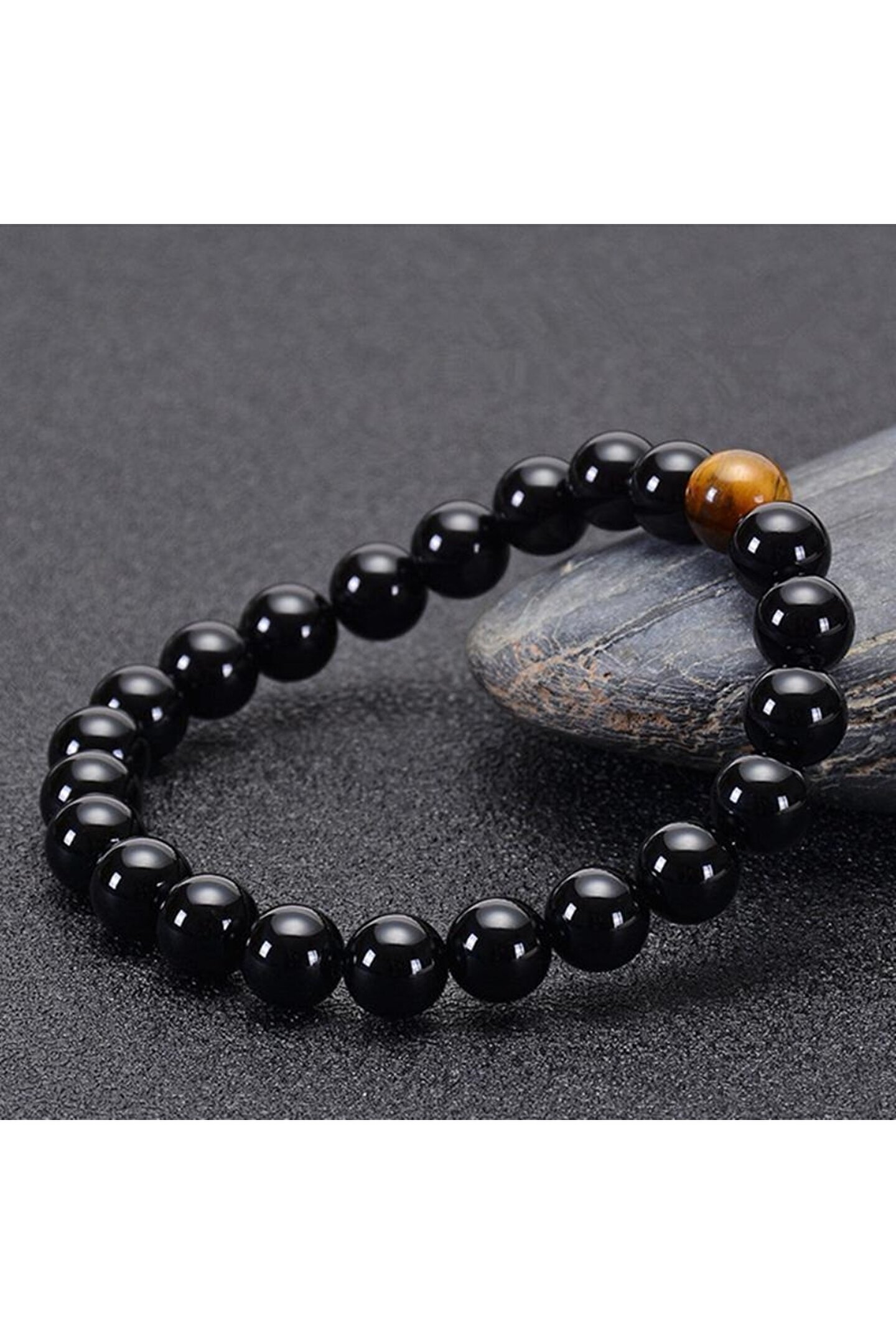 8 Mm Parlak Oniks Kaplan Gözü Erkek Mala Bileklik