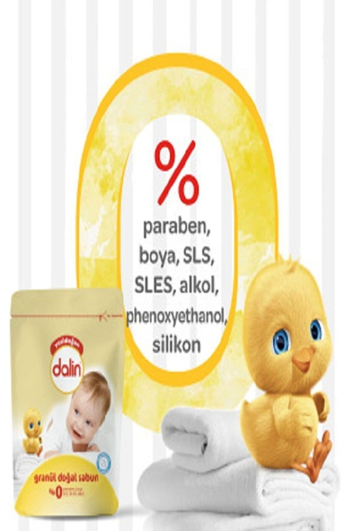 Dalin Saf Granül Sabun ; saf granül sabundur.; Dermatolojik olarak test edilmiş, bebeğinizin hassas cildine uygun olduğu onaylanmıştır.; Bebeğinizin tüm çamaşırlarında güvenle kullanabilirsiniz.; Dalin Saf Granül Sabun ile yıkanan pamuklu (polyester-pamuklu vb.; ) tüm çamaşırlar tertemiz ve yumuşacık olur, renkleri canlılığını korur.; Suda kolay çözündüğü için bebeğinizin cildine ve çamaşırlarınıza zarar vermez.; Bebek cildi ve hassas ciltler için önerilir.;