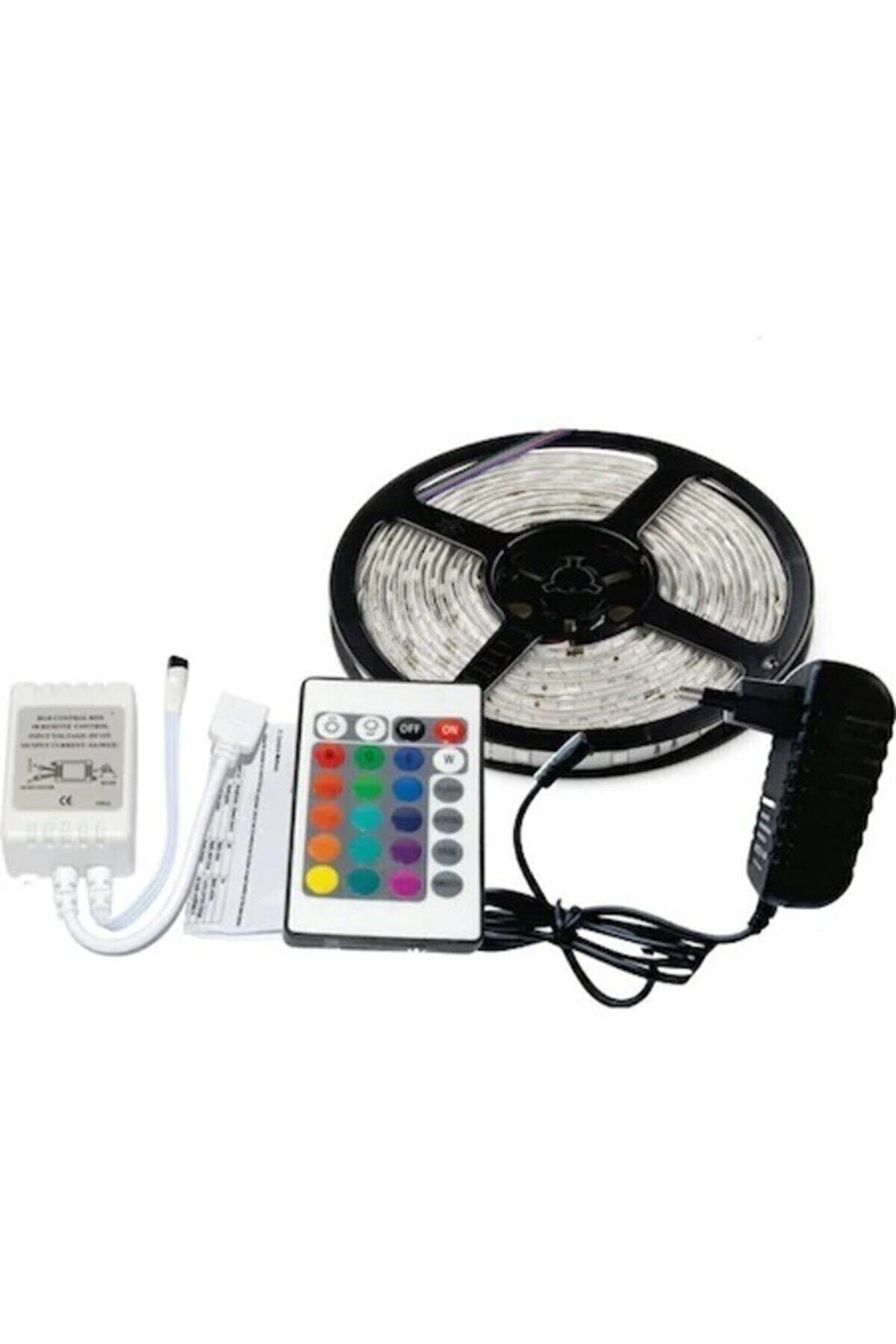 Rgb 20 fonlsyonlu Şerit 5 m Renkli Kumandalı Adaptörlü Çift Taraflı Bant Tak Çalıştır Led