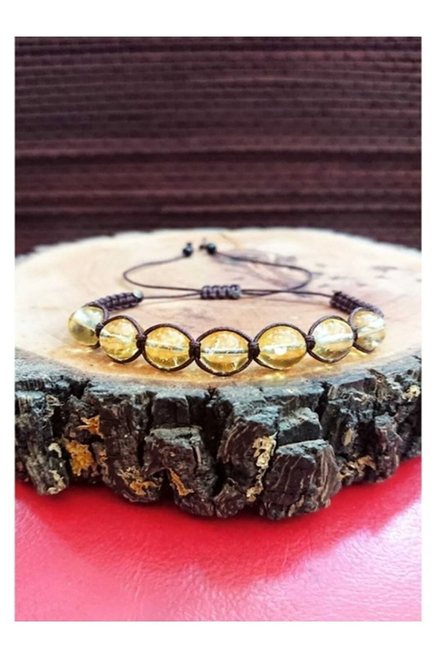 Doğal sitrin taşı kullanılarak tasarlanmış, gerçek doğal taşın sıcaklığını ve ışıltısını yansıtan zarif bir makrome örgü bileklik.; El yapımı makrome tekniği ile örülen bu bileklik, hem şık hem de benzersiz bir aksesuar seçeneği sunar.; Doğal sitrin taşı sayesinde her biri eşsiz olan bu bileklikler, takı koleksiyonunuza sofistike bir dokunuş katar.; Minimalist tasarımıyla günlük giyimden özel davetlere kadar geniş bir kullanım alanına sahiptir ve her ortama uyum sağlayacak şekilde tasarlanmıştır.; Doğal taşın sağladığı pozitif enerjiyi bileğinize taşıyan bu bileklik, gün boyu rahatlıkla kullanabileceğiniz konforlu bir aksesuardır.;