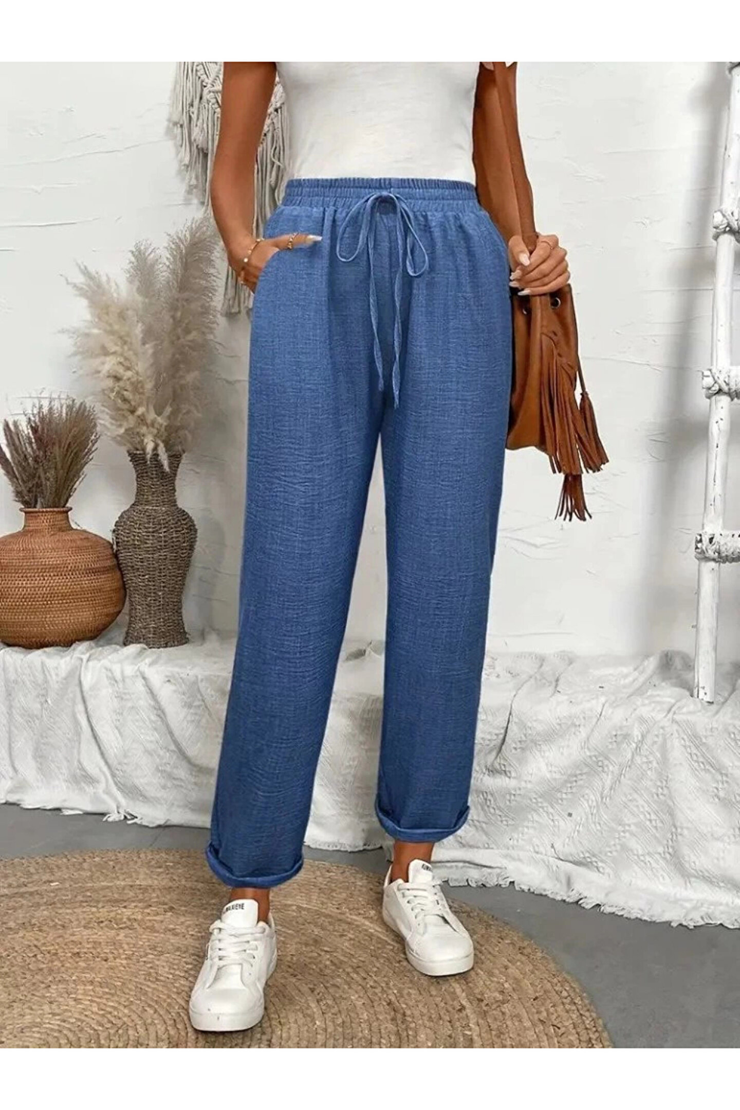 Kadın Yüksek Bel Lastikli Belde Bağcık Detaylı Aerobin Pantolon