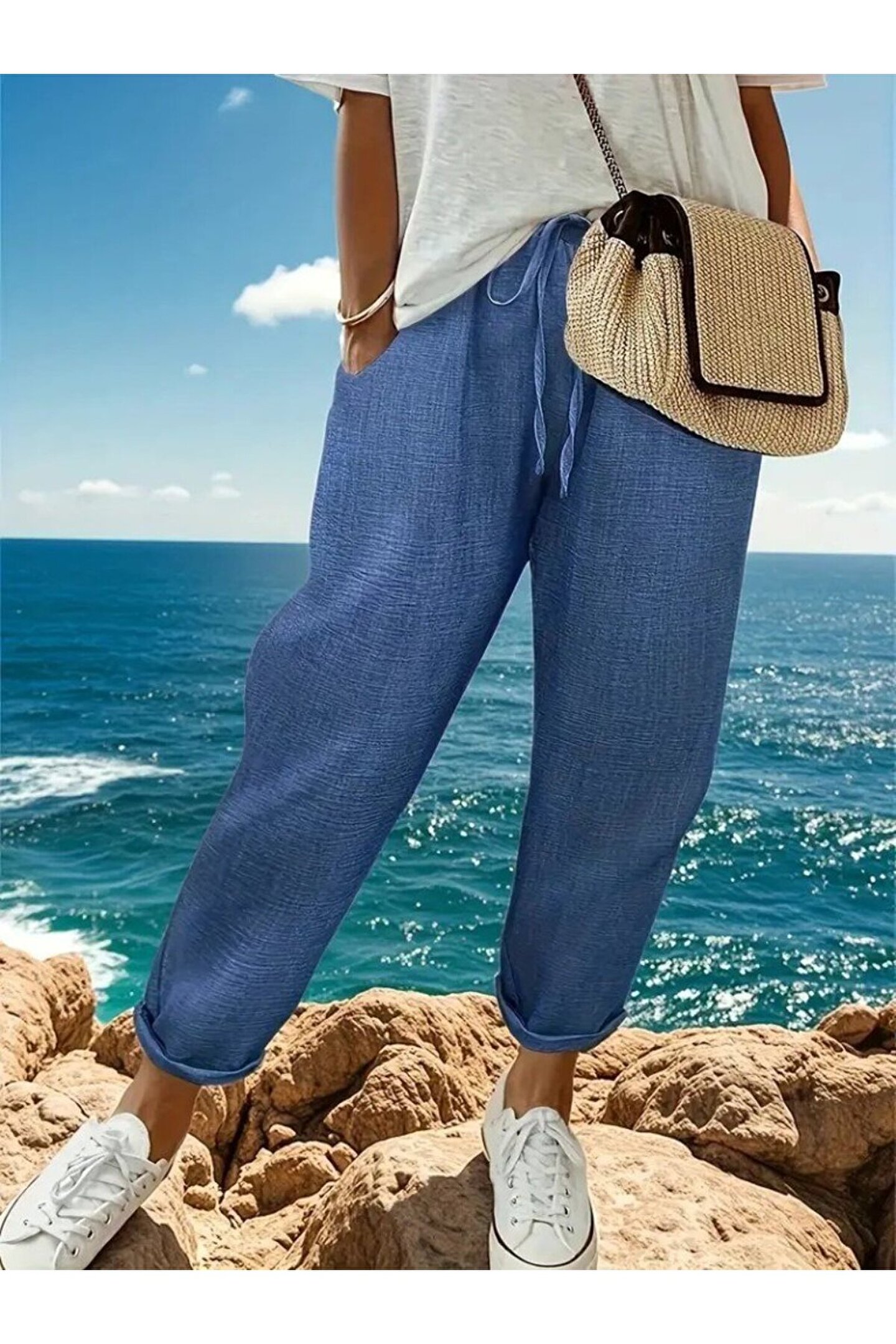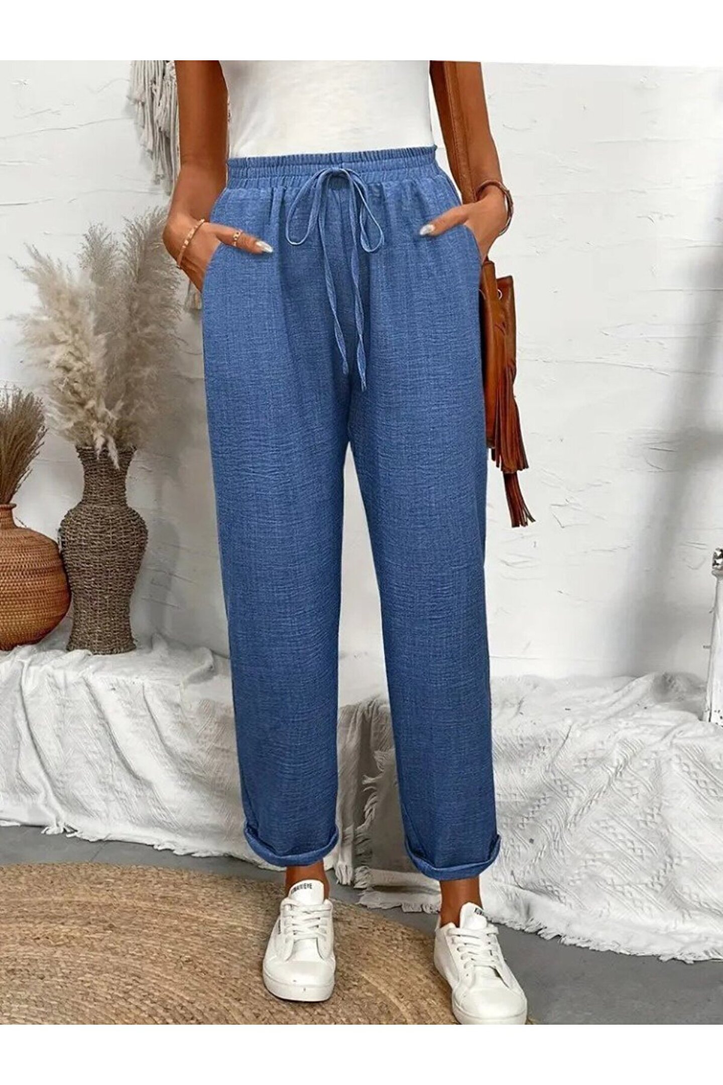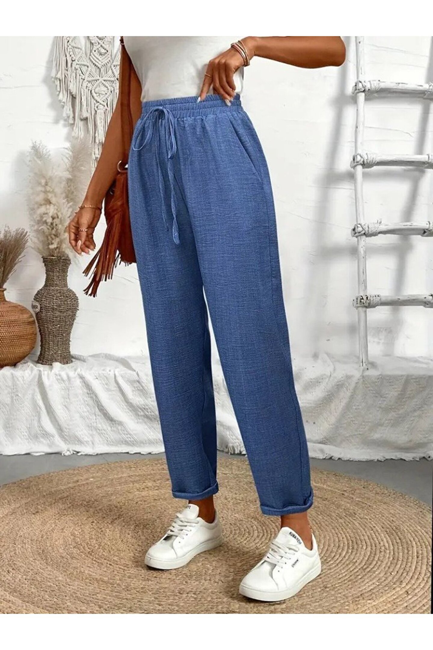 Kadın Yüksek Bel Lastikli Belde Bağcık Detaylı Aerobin Pantolon