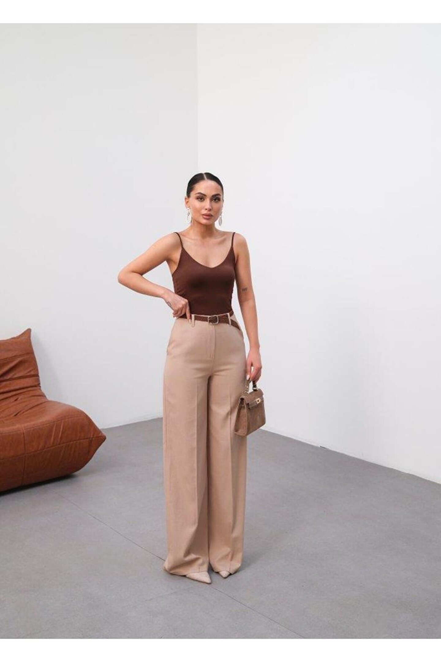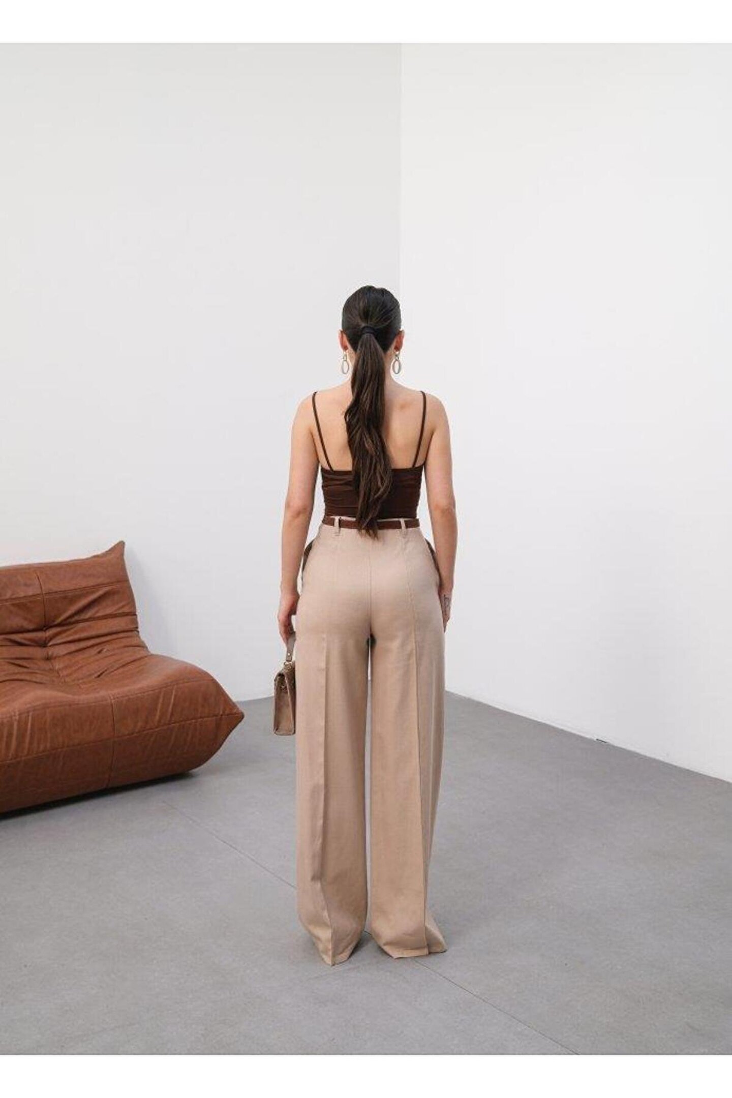 DEAG Keten Kemerli Ve Dökümlü Palazzo Pantolon (Kemer Dahil)