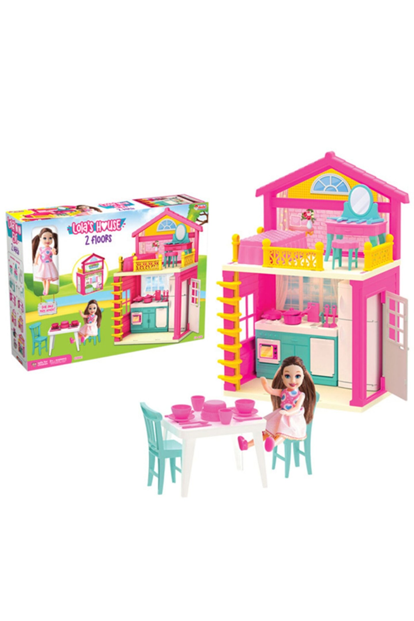 Lola'nın 2 katlı oyun evinde, onunla birlikte vakit geçirmek çok keyifli olacak! Ürünün; üst katında yatak odası, alt katında mutfak bulunmaktadır. Ayrıca, açılabilir kapısı ve birçok aksesuar ile birlikte. Ürün; 3 yaş altı çocuklar için uygun değildir. Sağlık testlerinden geçmiştir. Yerli üretimdir. Ölçü: 395x285x90 mm ;
