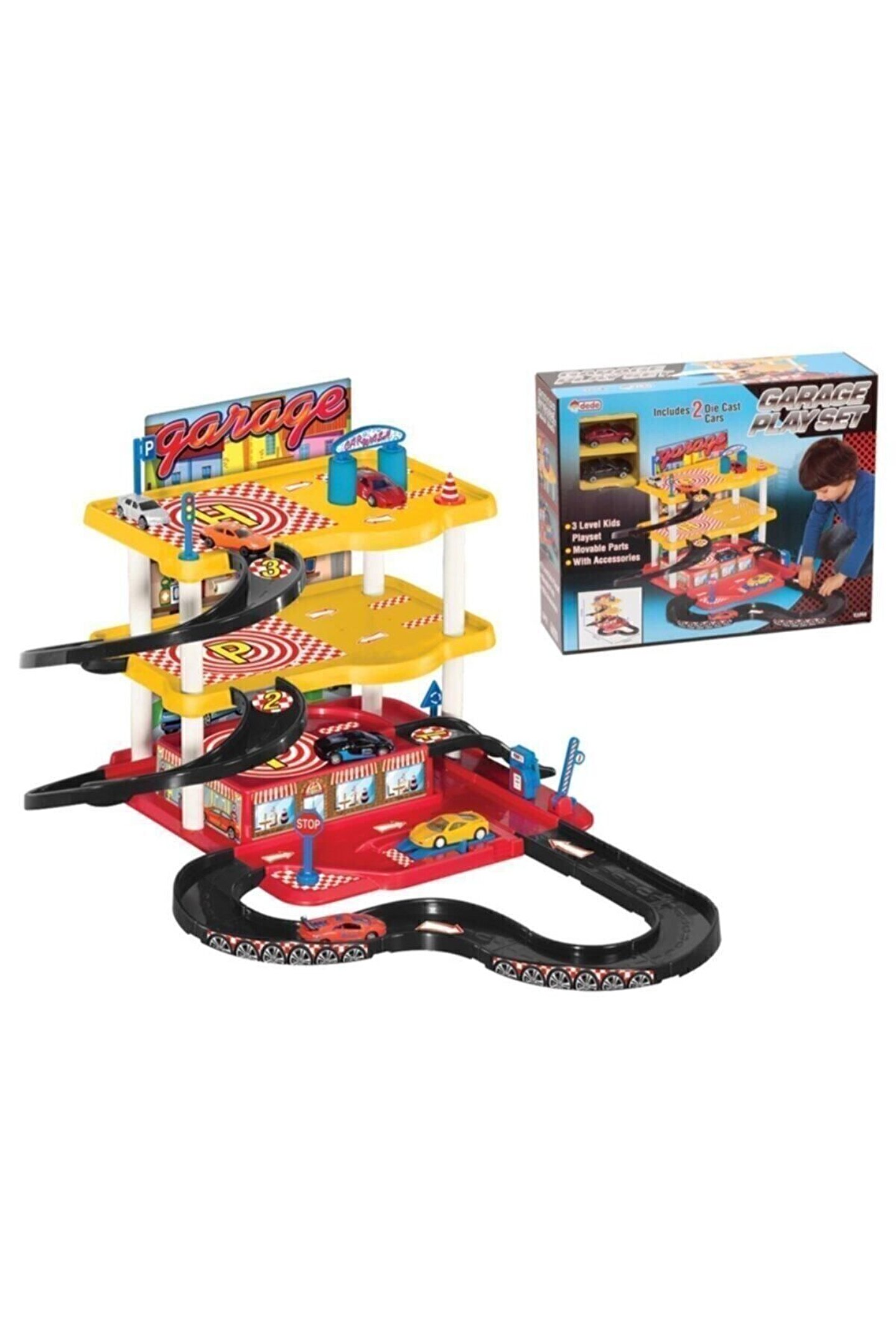 Oyuncak Garaj Setleri Üç Katlı Oyuncak Otopark Garaj Seti 3 Katlı Çocukların oyunlarına renk getirecek oyuncak garaj seti Kutunun içinden çıkan parçaları birleştir, garajını kur ve oyununa başla! İster arkadaşların ile istersen tek başına içinden çıkan 2 adet araba ile oynamaya başla. ; Benzin istasyonu, otopark, trafik ışıkları ve çeşitli aksesuarları ile gelen oyuncak garaj setini çocuklar çok sevecek Süper Bir Garaj 3 katlı oyuncak garaj seti uzunluk 57 cm, genişlik 74 cm, yükseklik 45 cm 3+ Yaş Çocuklar İçin Uygundur. ; Sağlık Testlerinden Geçerek Türkiye'de Üretilmektedir. ; Oyuncak Garaj Setleri Üç Katlı;