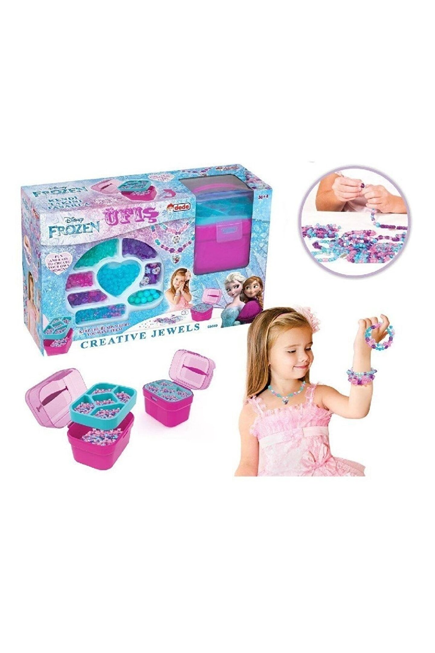 Çocukların hayal gücünü geliştiren ve eğlenceli vakit geçirmelerini sağlayan sepetli takı seti; Küçük yaş grubundaki çocuklar için ideal, güvenli ve eğitici bir oyuncak seçeneği; Renkli ve canlı tasarımları ile çocukların dikkatini çeken, görsel açıdan zengin bir deneyim sunar; Kolay taşınabilir sepeti sayesinde çocuklar, takılarını yanlarında taşıyabilir ve her yerde oyun oynayabilirler; Ebeveynler için de pratik bir seçim; çocukların yaratıcılığını teşvik ederken, ebeveynlerin de rahat etmesini sağlar;