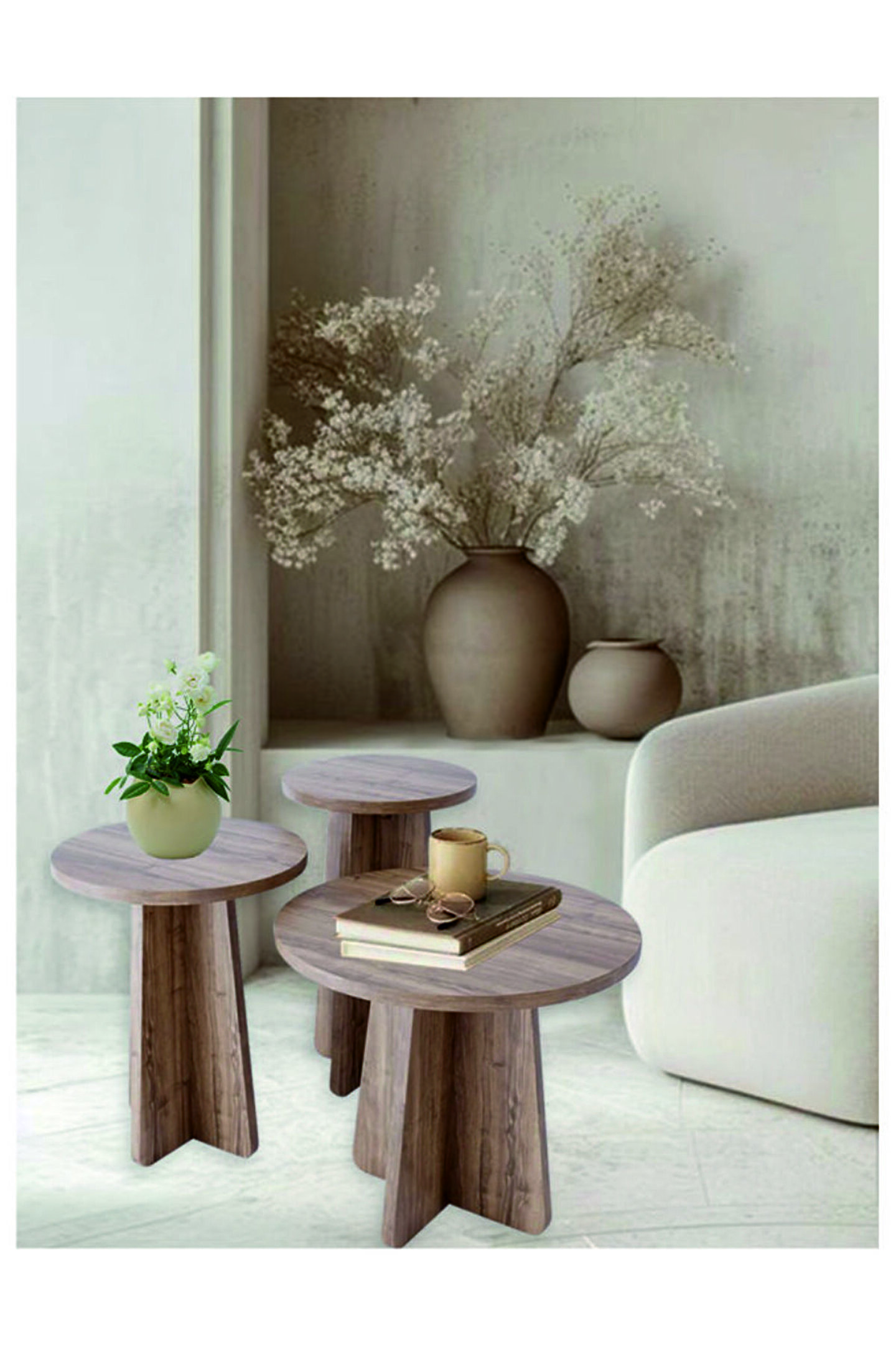 - Zarif tasarımıyla dikkat çeken mantar 3'lü zigon sehpa, modern ve minimalist dekorasyon anlayışınıza uyum sağlar.; - Beyaz renk seçeneğiyle aydınlık ve ferah bir atmosfer yaratırken, her türlü mekanla kolayca uyum sağlar.; - Suntalam malzemesi sayesinde dayanıklılığı artırılmış olup uzun ömürlü kullanım sunar.; - Üç parça halinde gelen bu set, farklı ihtiyaçlarınıza göre esneklik kazandırarak pratik bir çözüm sunar.; - Yuvarlak formu ile hem oturma odası hem de mutfak gibi alanlarda rahatlıkla kullanılabilir; mekanınızda şık bir dokunuş ekler.; - İskandinav stilinin sadeliğini yansıtan bu ürün, evinizin genel estetiğine sofistike bir hava katar.; ÜRÜN ÖLÇÜLERİ; KÜÇÜK: 28 ( çap ) x 47 ( yükseklik) cm ORTA::33 ( çap ) x 42 ( yükseklik) cm BÜYÜK::43 ( çap ) x 38 ( yükseklik) cm