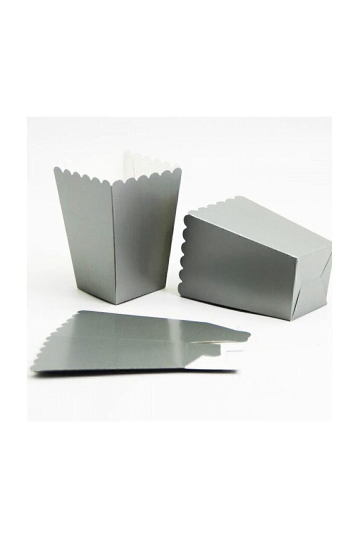 Popcorn Kutusu ( Mısır , Cips Kutusu ) 8 Adet Gümüş