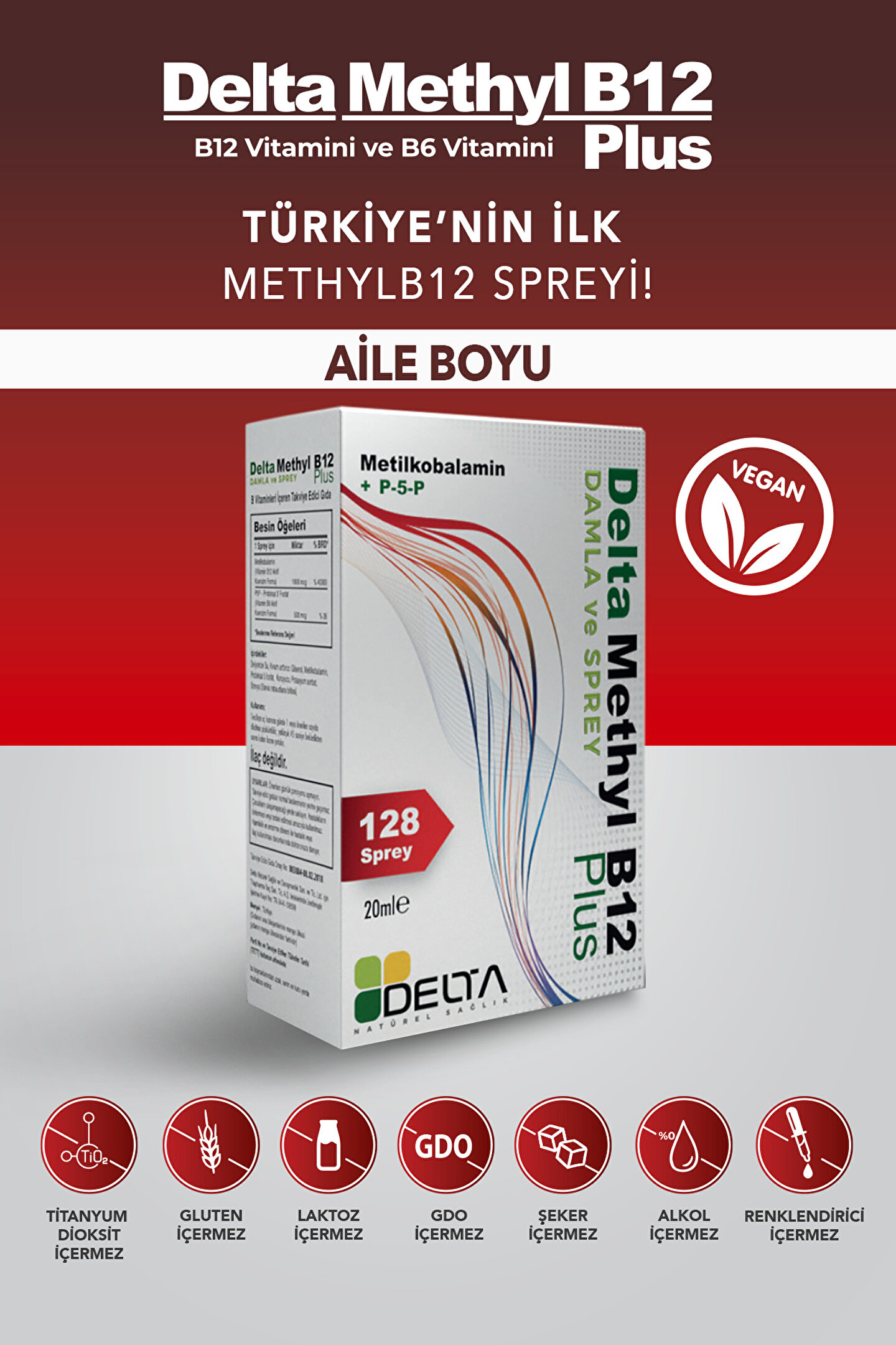 ÜRÜN ÖZELLİKLERİ: SİYANÜRSÜZ B12 B12 vitamininin aktif formu Metilkobalamin (Methylcobalamin) 20ml – 128 Spray Suda çözünen, içeriğindeki kobalt elementi nedeniyle kobalamin olarak da adlandırılan B12, insan organizması için en gerekli vitaminlerden biridir.; ; Yapılan çalışmalarda bu vitamininin homosisteini metiyonine dönüştürme, DNA ve RNA’yı koruma, enerjiyi destekleme, sinir ve beyin hücrelerini koruma, serotonin üretimini uyarma, alyuvar hücrelerinin oluşumuna katkıda bulunma, bağışıklık sistemini destekleme ve olumlu bir ruh hali oluşturma gibi sayısız işlev gördüğü belirlenmiştir.; ; Gıdalarla alınan metilkobalamin midedeki intrensek faktör (IF) tarafından bağırsaklara taşınır, oradan da kan dolaşımı ile beyne ulaşır.; ; Suda çözünen, içeriğindeki kobalt elementi nedeniyle kobalamin olarak da adlandırılan B12 vitamini bir metil grubu vericisidir.; ; Homosistein metabolizmasında, enerji metabolizmasında, immün fonksiyonlarda ve sinir sisteminde önemli fonksiyonları vardır.; ; KULLANIM ŞEKLİ: 1 Puf (sprey) 1.000 mcg, 1 damla 320 mcg Metilkobalamin içerir.; ; Normal kullanım günde 1 puftur.; ; Öneriye göre günlük puf sayısı artırılabilir.; ; Genellikle günde 1 puf yeterli olduğundan 10 ml’lik kutu 2 ay, 20ml’lik kutu 4 ay kullanım içindir.; ; Piridoksal 5’Fosfat formüle B12’nin emilimini arttırmak (sinerjik etki) için eklenmiştir.; ; UYARI : ? Sitemizde satışı yapılan tüm ürünlerin içerik ve alerjen bilgileri bilgi amaçlı olarak yer almaktadır.; ; ? İçerik ve alerjen bilgilerini sürekli kontrol ediyor ve güncelliyoruz ancak en doğru bilgiyi ürün ambalajının üzerinde bulabilirsiniz.; ; ? Alerjiniz ya da özel bir durumunuz varsa ürünü kullanmadan önce doktorunuza danışınız ve ürün ambalajı üzerindeki etiket bilgilerini mutlaka kontrol ediniz.; ; ? Ürün ambalajı ile sitede yer alan bilgiler arasındaki farklardan doğabilecek problemlerde firmamız sorumlu değildir.; ; ? Vegan Bakkal'da satılan hiçbir ürün ilaç değildir, hastalıkların önlenmesi veya iyileştirme edilmesi amacıyla kullanılamaz.;