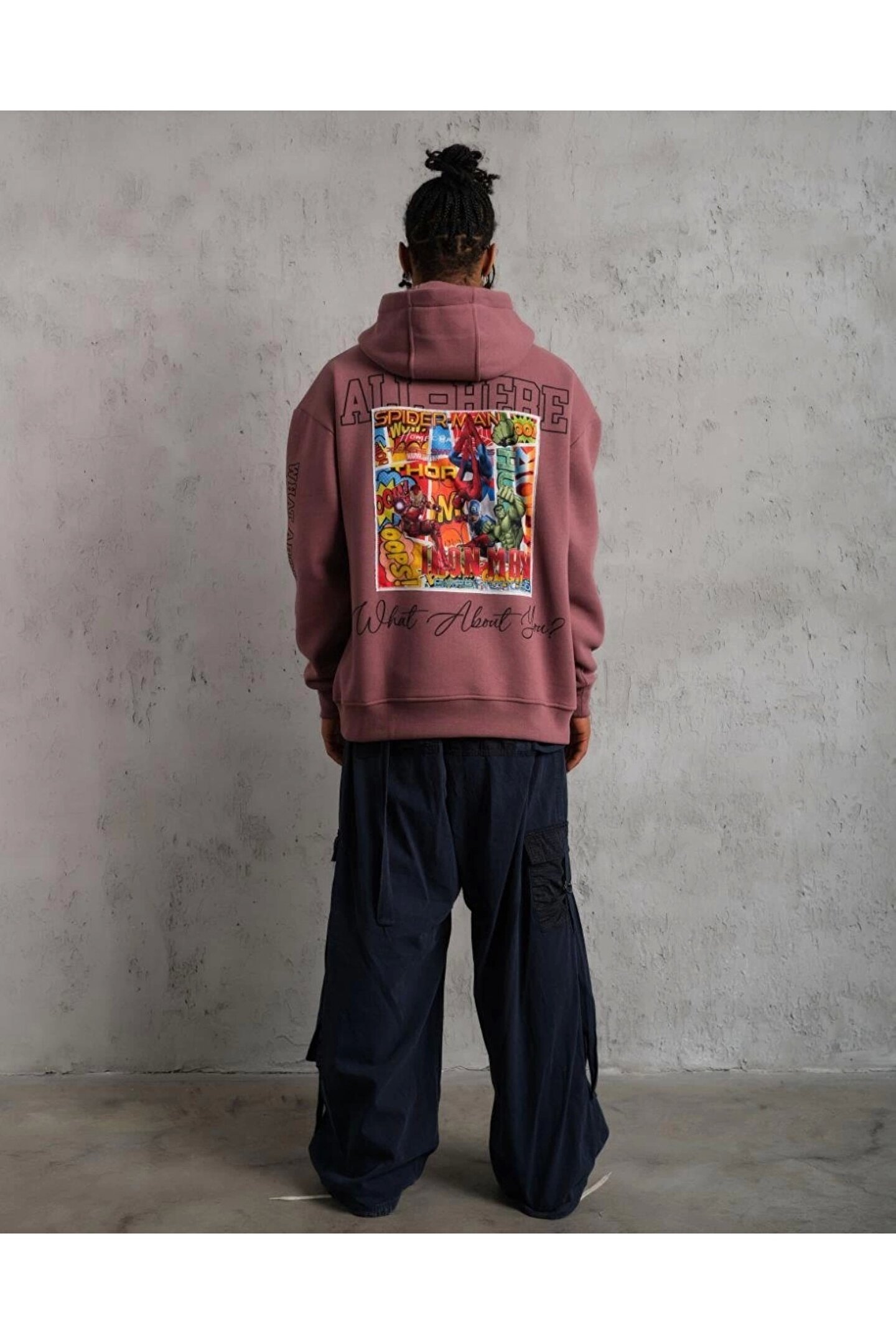 Denzy Erkek 93 Dijital Parça Baskılı Kapşonlu Sweat - Gül Kurusu
