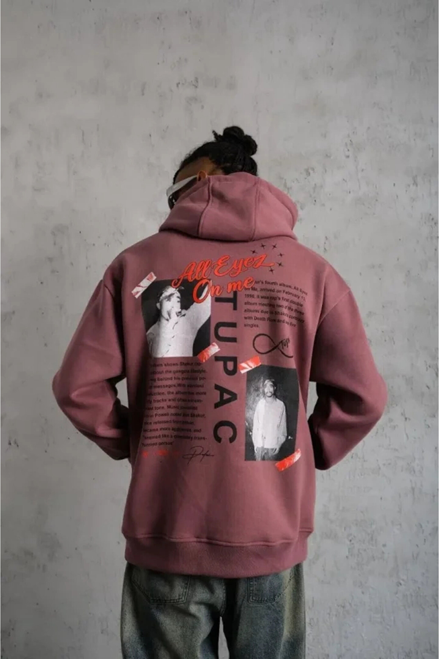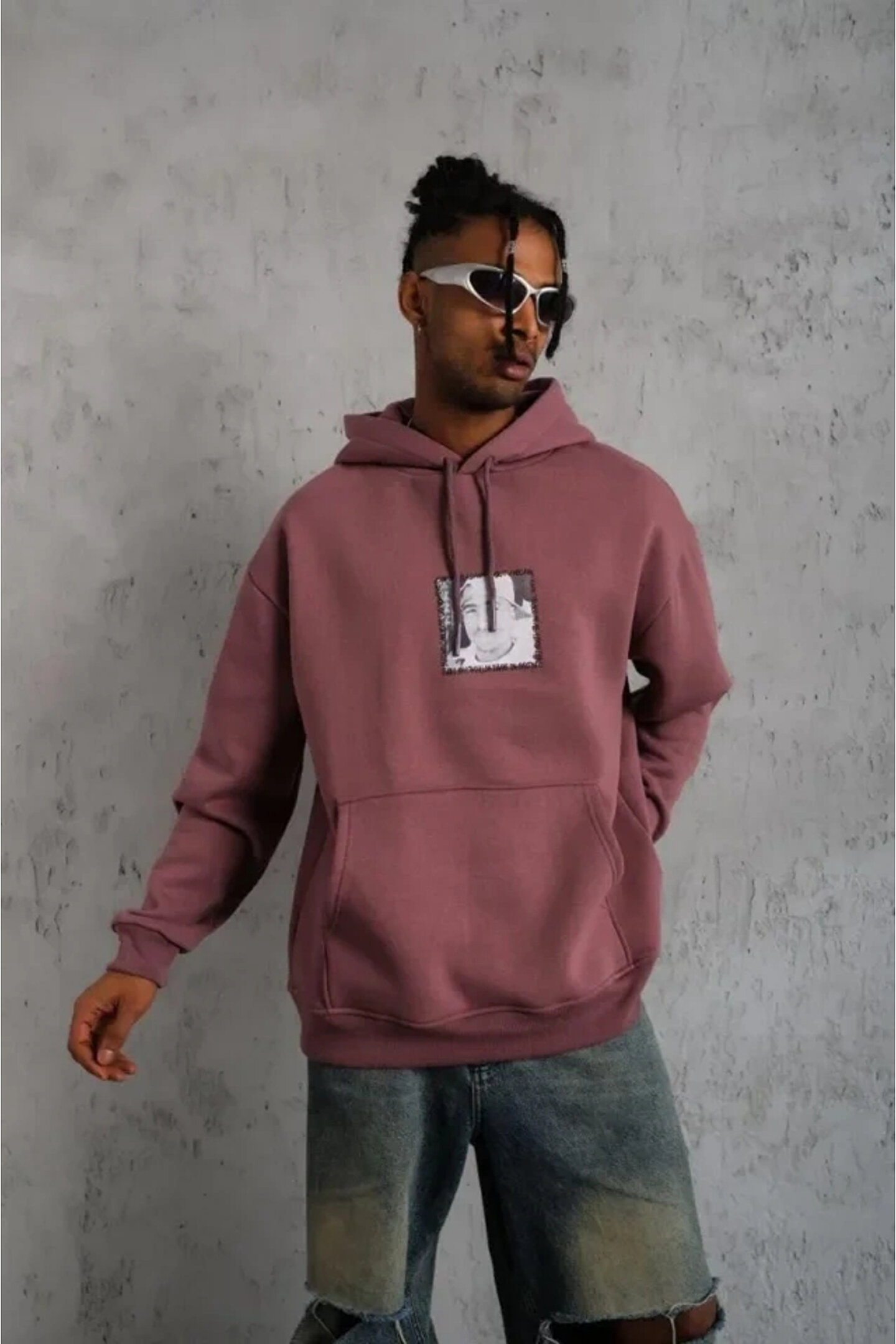 Denzy MDB Erkek Ön Arka Baskılı Kapşonlu weat Gül Kurusu