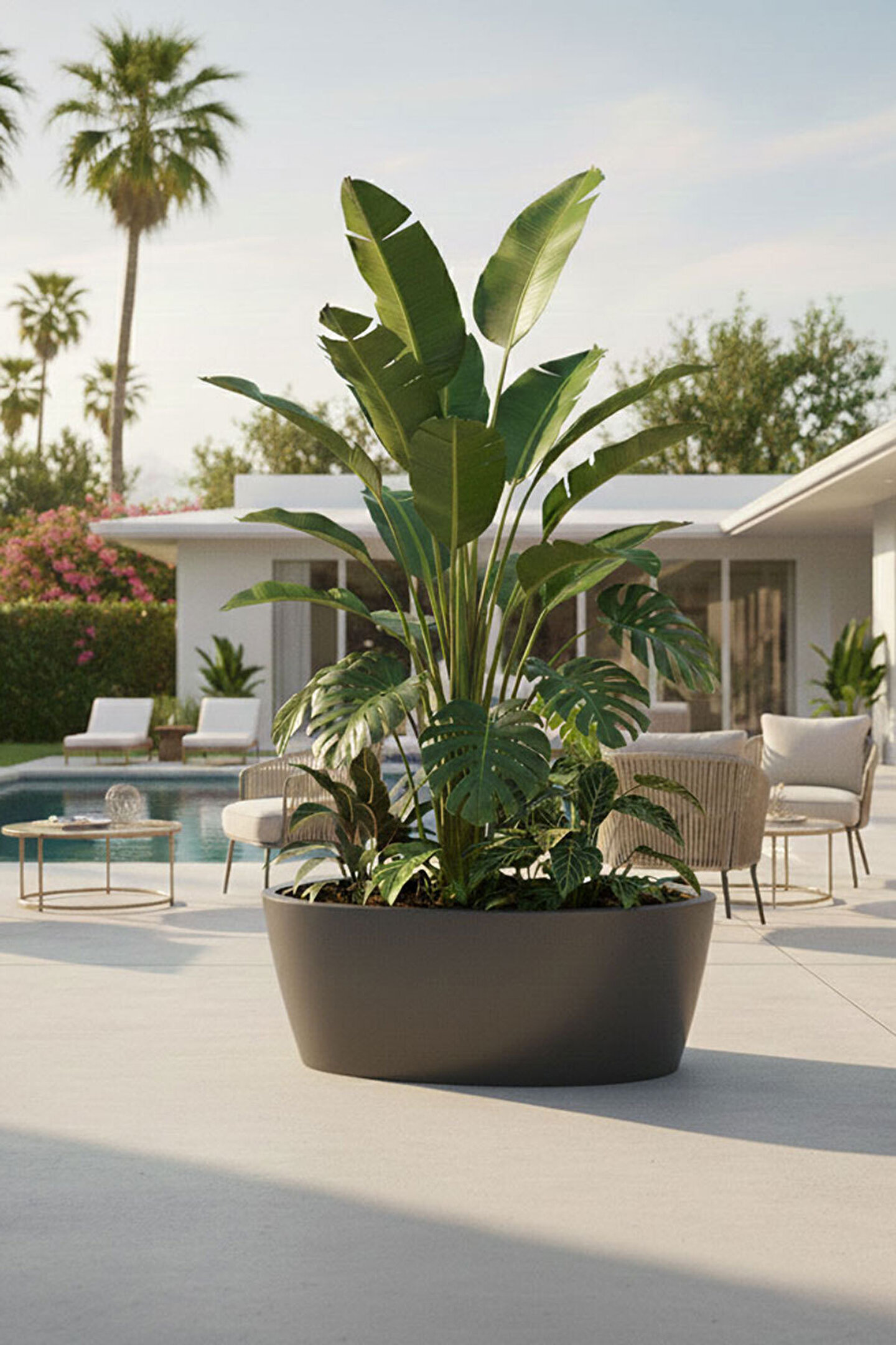 Aura Elipso, iç mekan ve dış mekan kullanımına uygun yapısıyla çok yönlü bir çözüm sunar. Salonunuzda bir odak noktası oluşturabilir, çalışma odanıza doğal bir dokunuş katabilir veya terasınızda, balkonunuzda, havuz başında modern bir peyzaj elemanı olarak kullanılabilir. Estetik ve dayanıklılığı bir arada sunarak, mekanlarınızın havasını anında değiştirir ve bitkilerinize hak ettikleri değeri verir.