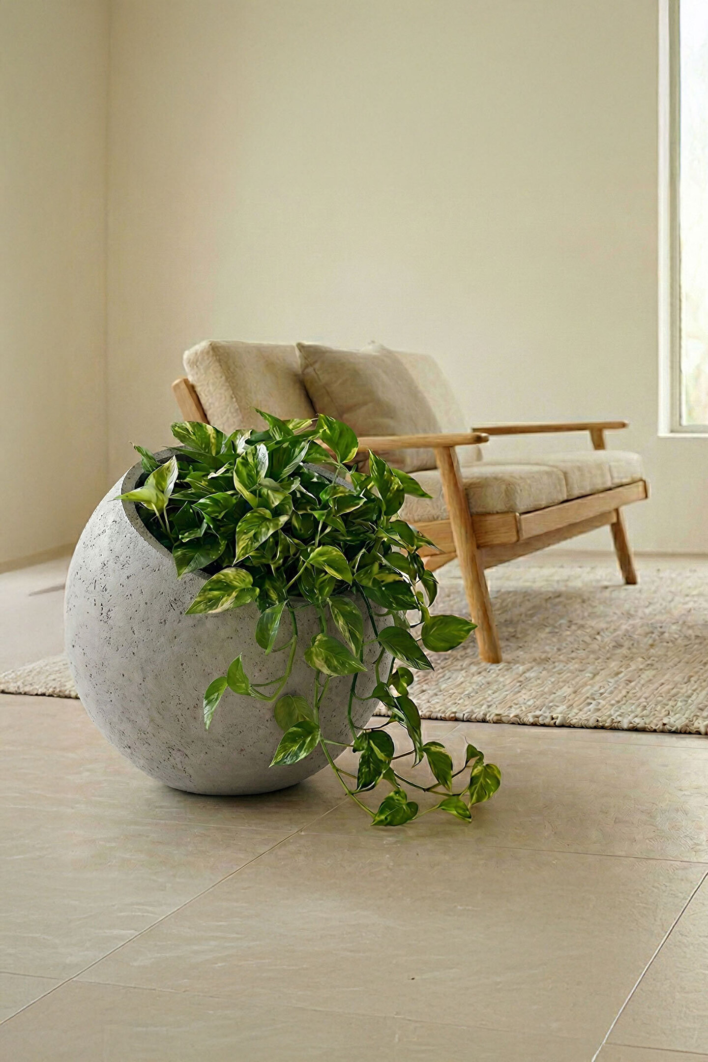 Petra Obliq Eğik Küre Hafif Beton Saksı 30x30cm Doğal Taş Dokulu İç-Dış Mekan