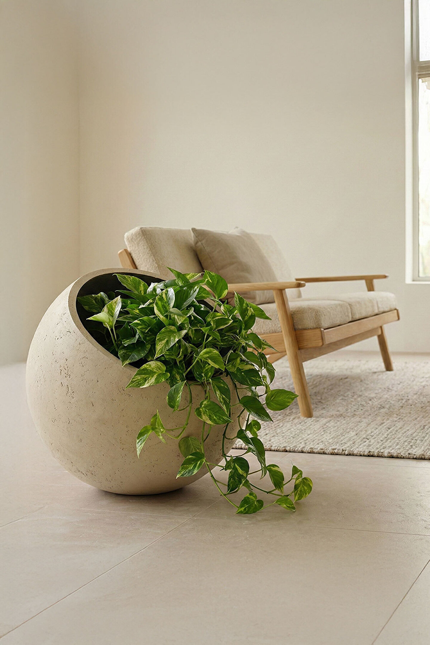 Petra Obliq Eğik Küre Hafif Beton Saksı 30x30cm Doğal Taş Dokulu İç-Dış Mekan