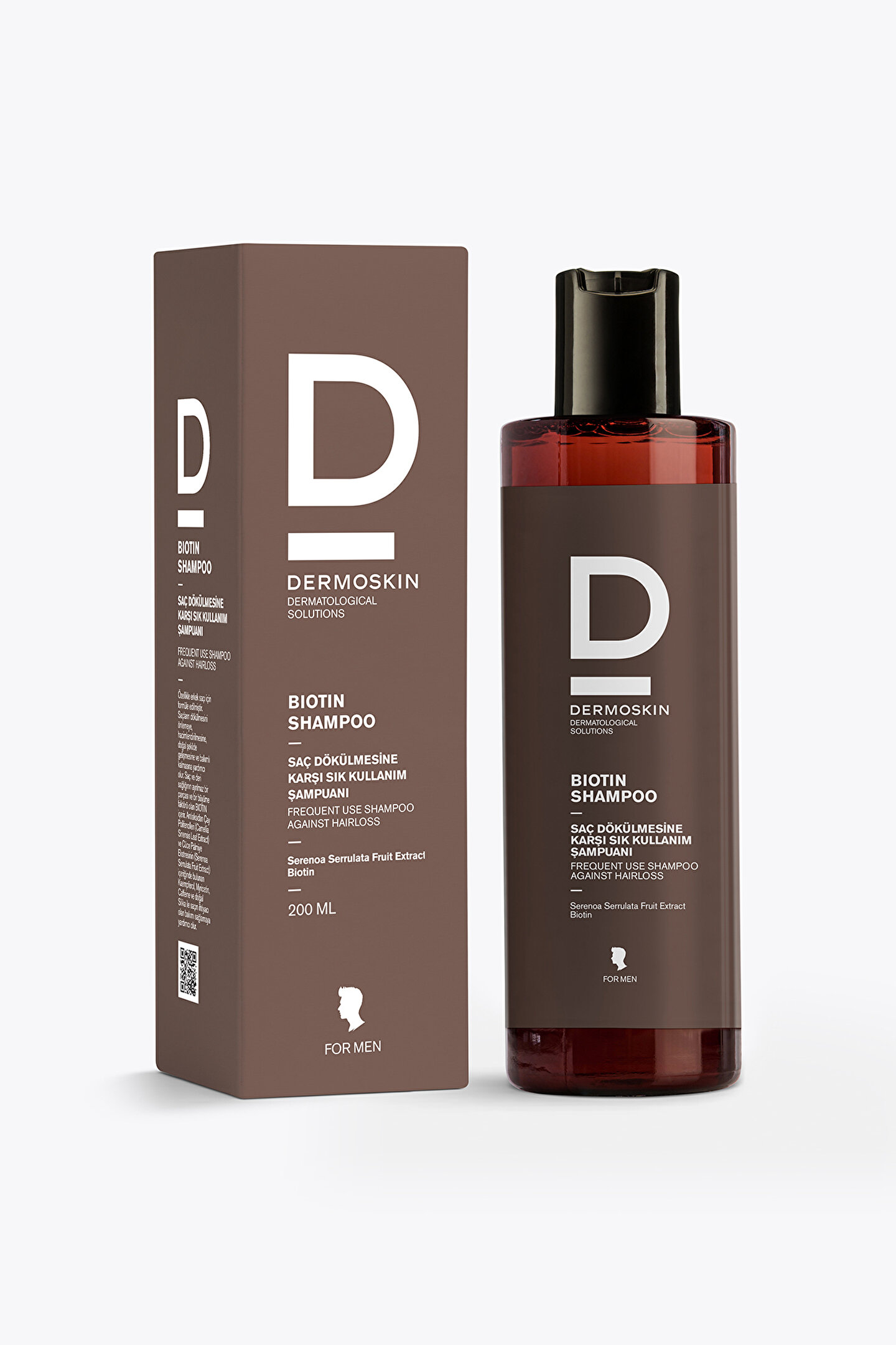 Dermoskin Biotin Şampuan (Erkek) 200 ml İçeriğinde bulunan etkinliği ispatlanmış hammaddeler yardımıyla, saçlı deriye besleyici bakım yapar. Doğru hesaplanmış güvenli temizleyici aktiflerle, saçlarda, saç derisinde hassasiyet yapmaz ve saç tellerinde hiçbir kalıntı bırakmadan temizler. Saçların; dökülmesini önlemeye, hacim kazanmasına, sağlıklı bir şekilde gelişmesine ve ömrünün uzamasına yardımcı olur. Saç ve deri sağlığının ayrılmaz bir parçası ve bir büyüme faktörü olan BİOTİN, Anti-oksidan çay ekstresi (Tea Extract) ve cüce palmiye ekstresi( Saw Palmetto Extract) ile birlikte kan dolaşımını hızlandırır, saçları besler. Saçlar fark edilir biçimde esnekleşir ve parlaklık kazanır. Biotin şampuan-Erkek; Medohbiotin 1 mg- 2,5 mg- 5mg Tablet ve Medobyocomplex M Kapsül isimli ve saç dökülmesini önlemede güçlü etkisi olan ürünlerimize tamamlayıcı şampuan olarak formüle edilmiştir. ETKEN MADDELER Biotin: Güçlü etkisi ile saç folikülünü besler, saç kaybını önlemeye ve saçın sağlıklı bir şekilde uzamasına yardımcı olur.; Saw Palmetto Extract (Serenoa Serrulata Fruit Extract): İçerisindeki esansiyel yağ asitlerinin yardımıyla DHT oluşumunu engelleyerek saçın dökülmesine neden olan hormonal etkiden kurtulmasına yardımcı olur.; Tea Extract (Camellia Sinensis Leaf Extract): İçeriğindeki çay polifenolleri, kafein ve steroller gibi güçlü antioksidanlar yardımıyla saçları oksidatif hasarlara karşı korur ve saça bakım yapar.; SAÇ TİPİ Erkekler için ve erkek tipi saç dökülmeleri için formüle edilmiştir. UYGULAMA Islak saça uygulayınız, köpürtünüz. En az 1-2 dakika saç üstünde tutunuz ve durulayınız. Sık kullanıma uygundur. UYARILAR Haricen kullanılır.; 15-25°C arasında oda sıcaklığında, nemsiz ortamda, çocukların ulaşamayacakları yerde ve kapağı kapalı olarak muhafaza ediniz.; Gözünüze temas etmesi halinde bol su ile durulayınız.;