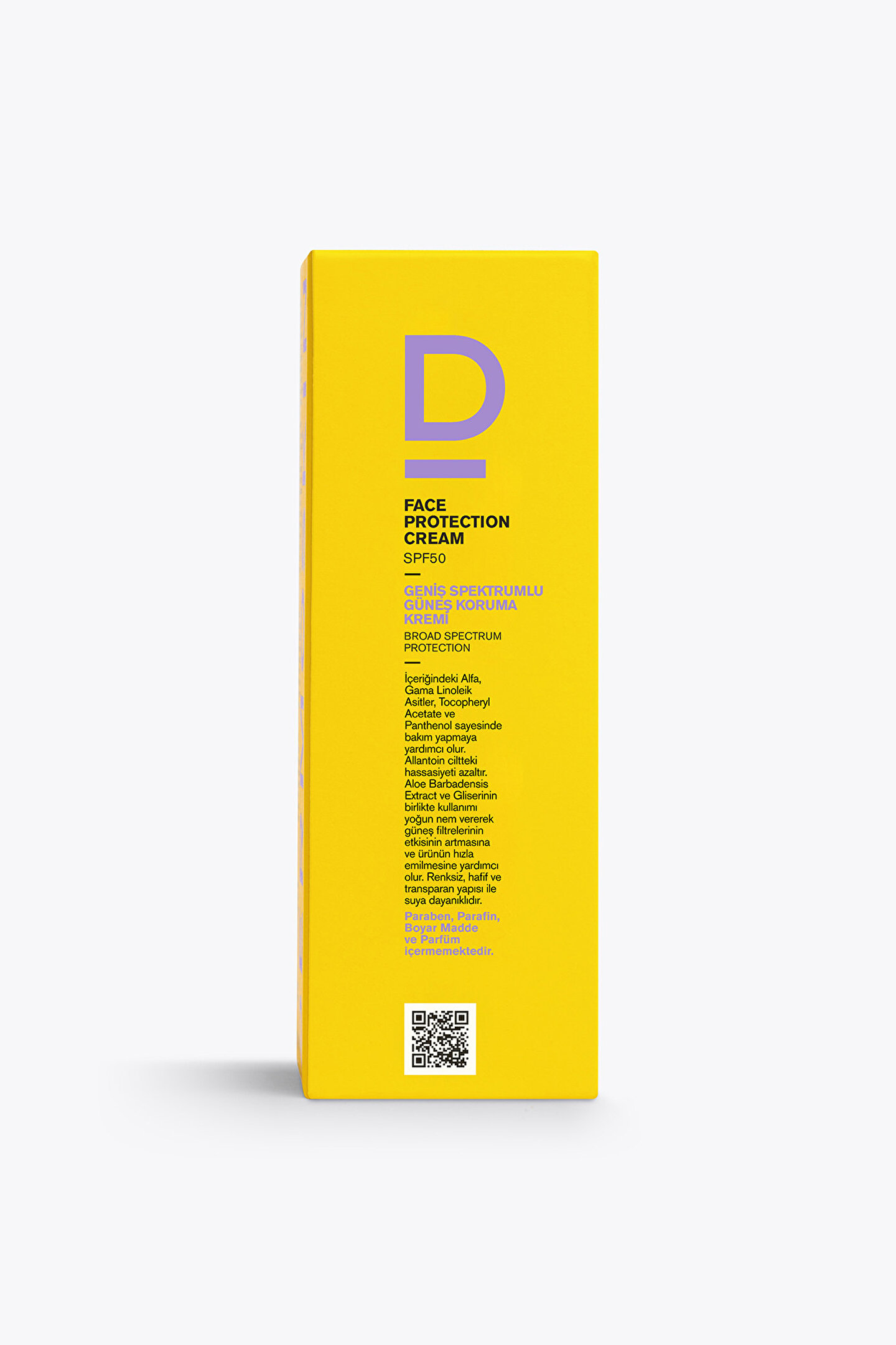 Dermoskin Face Protection Cream Güneş Koruyucu Krem SPF 50 - 50 ml;Ürün Markası: Dermoskin;Ürün Adı: Dermoskin Face Protection Cream Güneş Koruyucu Krem SPF 50;Ürün Boyutu: 50 ml;İçindekiler: Kimyasal ve fiziksel filtreler, Alfa Linoleik Asit, Gama Linolenik Asit, Titanium Dioxide;Uygulama Şekli: Güneşe çıkmadan en az 20 dakika önce, cilde eşit dağılacak biçimde güneş kremini sürünüz.; Terleme, yüzme, havluyla silinme sırasında ürün kaybı olacağından Dermoskin Güneş Koruyucu Kremi yeniden uygulayınız.; Uzun süre güneşte kalındığında sıkça tekrarlayınız.;Öneri: Kimyasal peeling ve lazer sonrası kullanıma uygundur.;Faydaları: Geniş spektrumlu UVA-UVB koruması sağlar, cildin koruma tabakasını güçlendirir, nemlendirici özelliği vardır, hızla emilir ve beyaz kalıntı bırakmaz.;Ürün Özelliği: Tüm cilt tiplerine uygun, suya dayanıklıdır, gözenekleri kapatmaz ve cildinize ipeksi bir his verir.; ;Dermoskin Face Protection Cream Güneş Koruyucu Krem SPF 50, tüm cilt tiplerine uygun olup, UVA-UVB ışınlarına karşı etkili geniş spektrumlu kimyasal ve fiziksel filtreler içerir.; Şeffaf görüntüsü ve su bazlı filtrelerin çoğunlukta olması nedeniyle yağlı ve li ciltlerin kullanımına uygundur.; İçeriğindeki Alfa Linoleik ve Gama Linolenik asitler, epidermal su kaybına karşı cildin koruma tabakasını güçlendirir.; 12 ay kullanıma uygun nemlendirici özelliği olan güçlü bir UVA-UVB SPF 50 koruyucusudur.; Ayrıca kimyasal peeling, lazer sonrası güneş koruyucu ve nemlendirici olarak kullanıma uygundur.; Ürün hızla emilir, cilde sürüldüğünde beyaz kalıntı bırakmaz, hafif ve transparan yapısıyla cildinize ipeksi bir his verir.; Gözenekleri kapatmaz ve suya dayanıklıdır.; Ürünümüzde su bazlı Titanium Dioxide filtresi kullanılmıştır, bu nedenle ciltte beyazlanma, ve yağlanma yapmaz.; ;Uyarılar;Sadece harici kullanım içindir.;15-25°C arasında oda sıcaklığında, nemsiz ortamda, çocukların ulaşamayacağı bir yerde ve kapağı kapalı olarak muhafaza ediniz.;Göz ile temas etmesi halinde bol su ile durulayınız.; ;Dermoskin ürünlerinin resmi online satış sitesi.