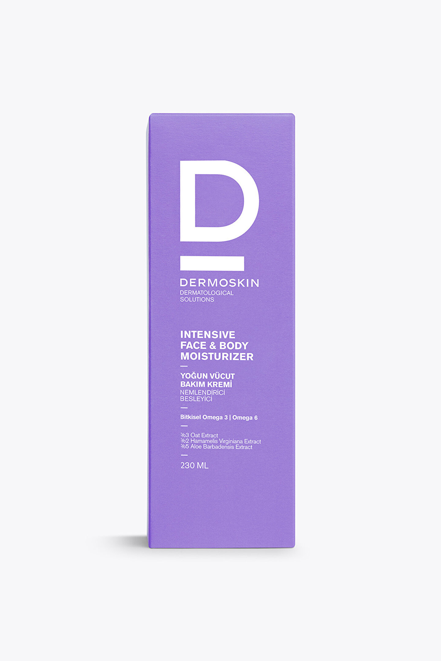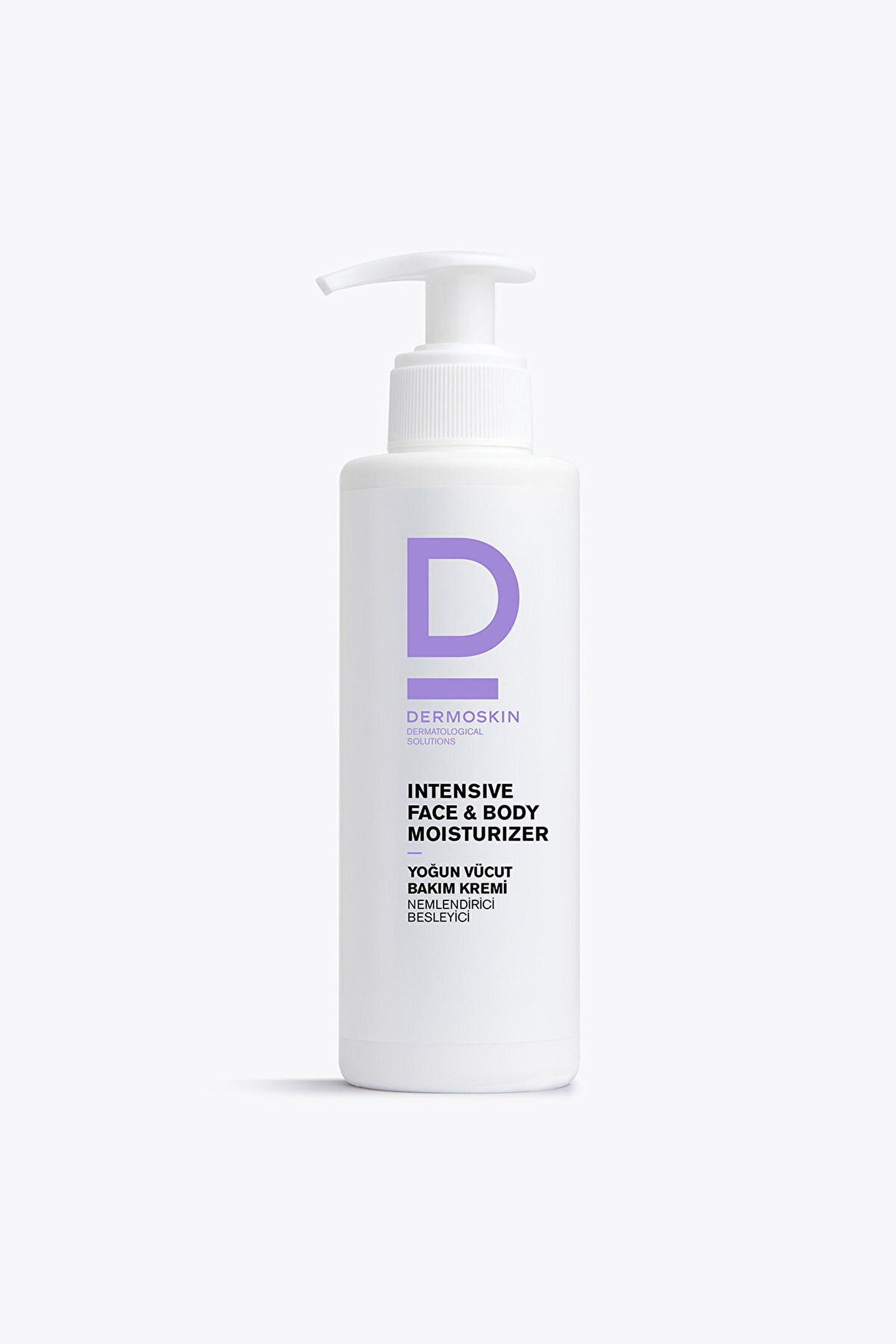 Dermoskin Intensive Moisturizer Vücut Yoğun Bakım Kremi 230 ml vücudunuzu nemlendirmeye ve beslemeye yardımcı olur.; Transepidermal su kaybını önleyerek cildin nem tutma kapasitesini arttırımaya yardımcı olur.; İçeriğindeki etken maddeler ile;; Kuru ve çok kuru ciltlerin koruma tabakasını güçlendirmeye,; Alfa ve Gama Linoleik Asitlerle bariyer tabakasının nem tutma kapasitesini artırmaya yardımcı olur.; CİLT TİPİ Tüm ciltler için kullanıma uygundur.; UYGULAMA ? Temizlenmiş cilde nemlendirme amacıyla doğrudan uygulanabilir.; UYARILAR Haricen kullanılır.; 15-25°C arasında oda sıcaklığında, nemsiz ortamda, çocukların ulaşamayacakları yerde ve kapağı kapalı olarak muhafaza ediniz.; Gözünüze temas etmesi halinde bol su ile durulayınız.;