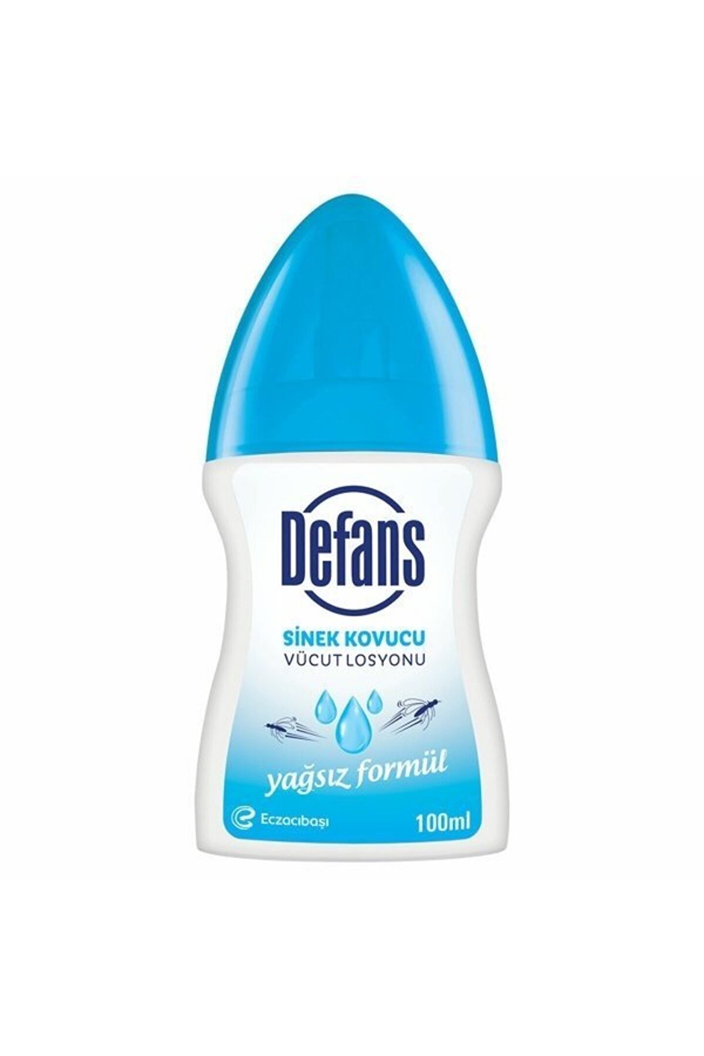 Defans Su Bazlı Yağsız Sinek Kovucu Vücut Losyonu 100 ml Ürün Açıklaması Yağsız formülü sayesinde sizi sivrisinek, karasinek ve kenelerden uzak tutarken aynı zamanda cildinizi ağırlaştırmadan koruma sağlar.; Açık havada Defans Sinek Kovucu Vücut Losyonu Yağsız Formül rahatça kullanılabilir.; Yüze ve tüm cilde uygulanabilir.; Cilt için tahriş edici değildir.; Etki süresi karasineklerde 4 saat, sivrisineklerde 6 saat ve kenelerde 2 saattir.; Ciltten emilmeyen özel yağsız formülü bulunmaktadır.; Kullanmadan önce iyice çalkalayınız.; Homojen şekilde cildinize yayınız.; Göz çevresi ve dudak çevresine uygulamayınız.