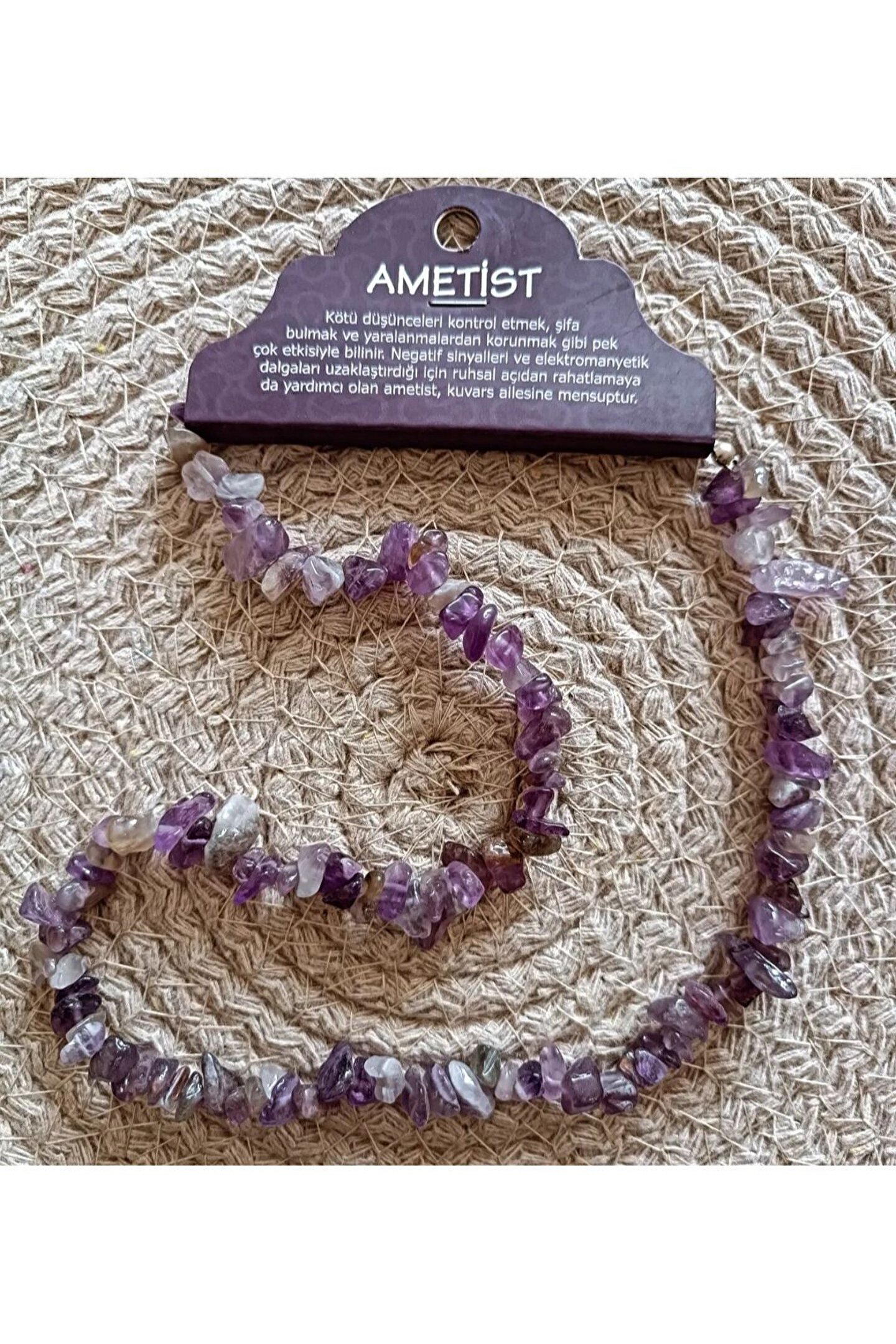 Doğal Ametist taşı kullanılarak üretilmiş, şifalı özellikleriyle bilinen bir kolye tasarımı; Kolye, kırıktaş şifalı doğaltaşın eşsiz güzelliğini ve gücünü yansıtan zarif bir aksesuar seçeneği sunar; Ametist taşı, sakinleştirici etkisiyle bilinir ve stresle başa çıkmada yardımcı olabilir; Doğal taş materyali sayesinde her kolye benzersizdir ve her zaman özgün bir stil ifade eder;