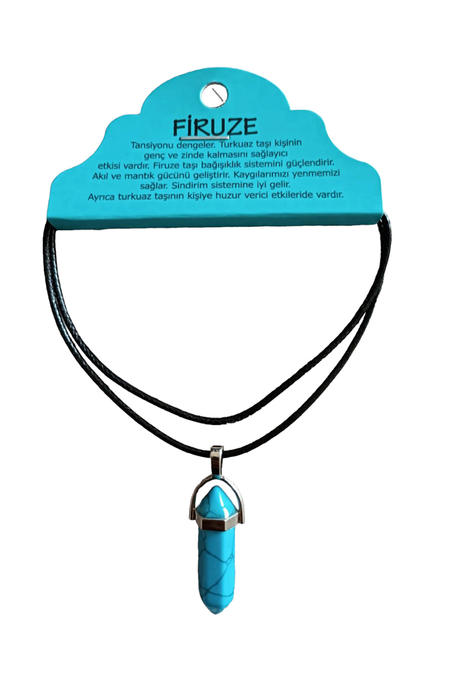 Doğal taş kullanımı sayesinde her kolye benzersiz ve otantik bir görünüm sunar; Firuze turkuaz taşı, kolyenin şıklığını ve zarafetini artırarak dikkat çekici bir aksesuar oluşturur; Doğal taş materyali ile hem estetik hem de sağlığa faydalı bir takı deneyimi sağlar;