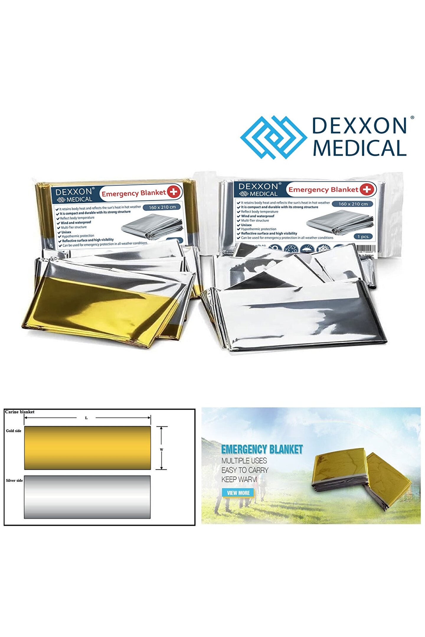 Açık ilk yardım kurtarma battaniye rüzgar geçirmez su geçirmez folyo termal battaniye acil durum battaniyesi kamp yürüyüş survival cankurtarma kiti aracı Acil durum battaniyesi fonksiyonlar: 1; Acil durum battaniyesi, vücut ısısını kazalardan sonra keskin düşüşten korumak için kullanılabilir; 2; Yansıtıcı film olarak kullanılabilir, kurtarıcılara bir sinyal gönderir; 3; Araç soğuk alanlarda veya geceleri bozuldu, vücudu sıcak tutabilir; Vücut ısısının % 90% 'unu korur/yansıtır; 4; Acil durum battaniyesi yağmurda panço olarak kullanılır; 5; Uyku tulumu koymak, daha iyi yalıtım; 6; Barınak, zemin örtüsü, battaniye vb; Olarak kullanılabilir; Özellikler: Özelliği: Kompakt boyutu, hafif, taşıması kolay, tek kullanımlık, su geçirmez ve rüzgar geçirmez Malzeme: Pet Renk: Gümüş/altın Boyut: 210*160cm; (1 inç = 2; 54 cm);;