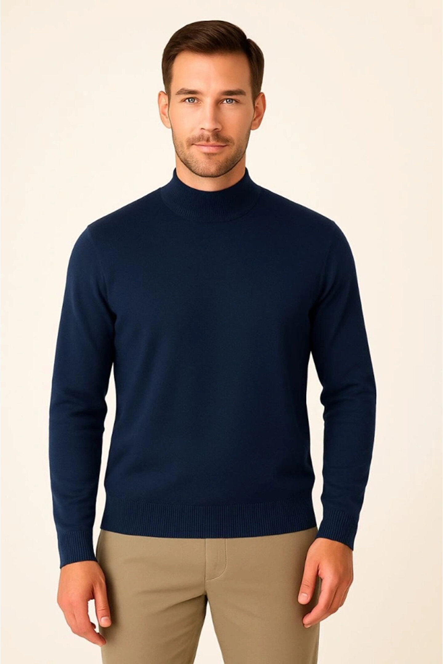 Erkek Yarım Boğaz Triko Kazak Yumuşak Dokulu Pamuklu Ince Dokuma, Uzun Kollu Rahat Regular Kalıp ac