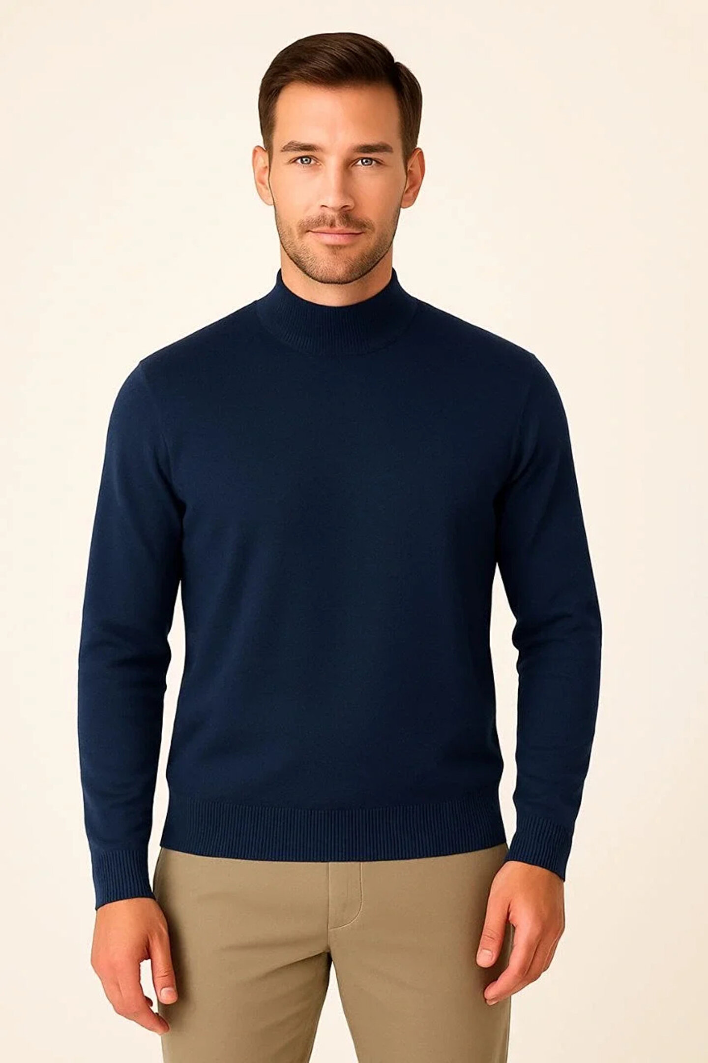 Erkek Yarım Boğaz Triko Kazak Yumuşak Dokulu Pamuklu Ince Dokuma, Uzun Kollu Rahat Regular Kalıp - Lacivert