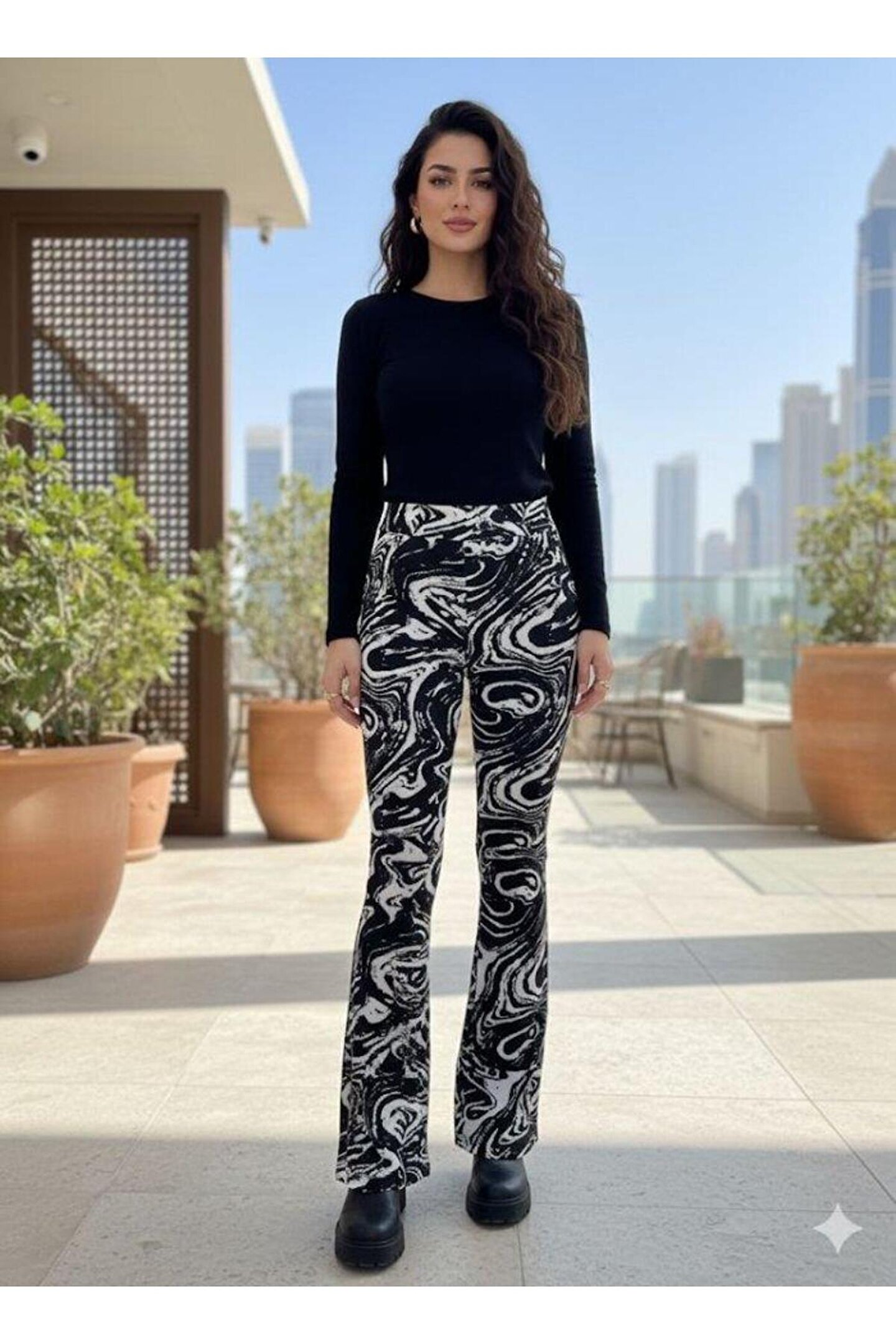 dilmex Kadın Yüksek Bel Krep Kumaş Bol Paça Pantolon