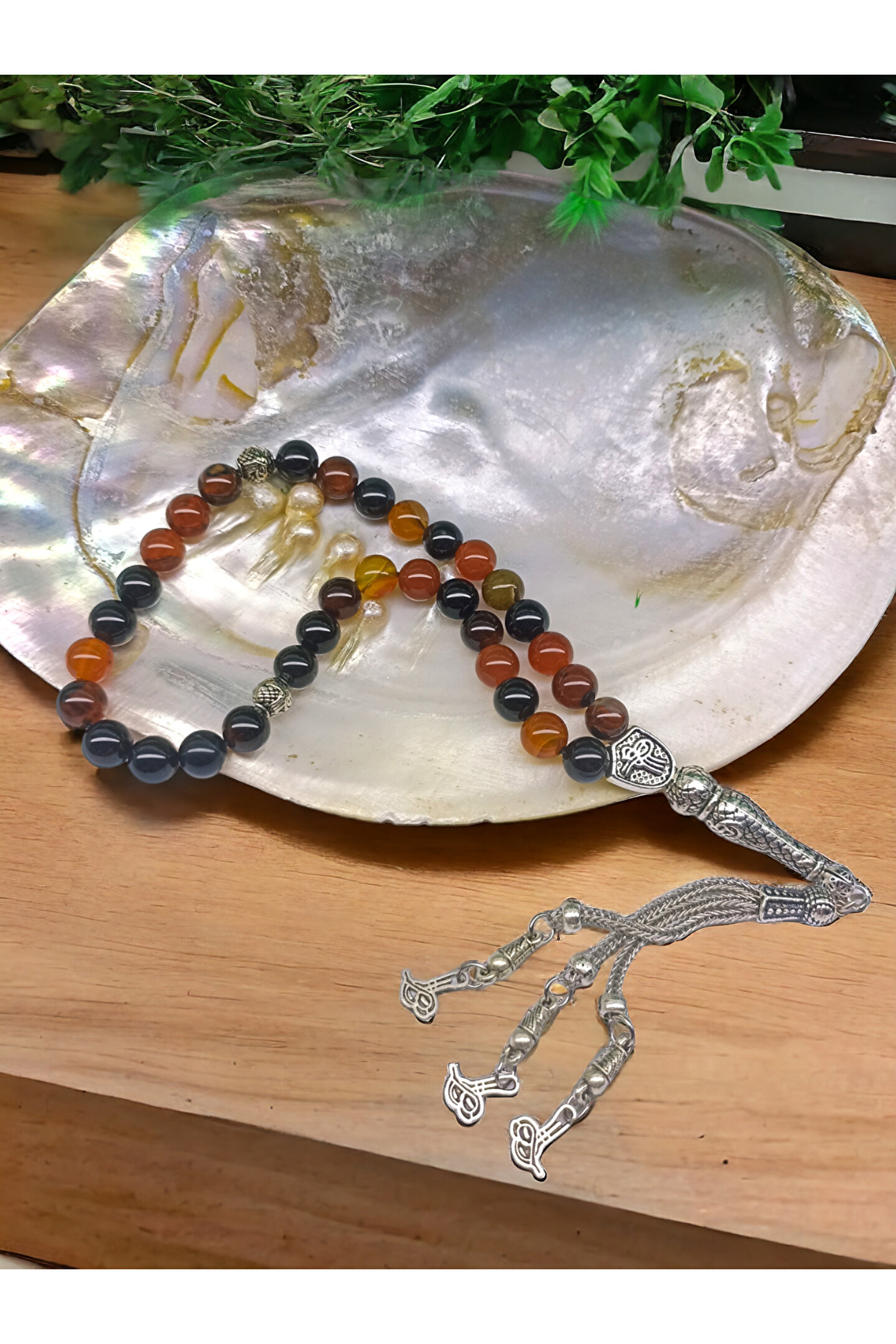 Gümüş kaplama malzemesiyle üretilmiş, uzun ömürlü ve şık bir görünüm sunar; Düz deseniyle sade ve zarif bir tasarıma sahip olup, her türlü kıyafetle kolayca uyum sağlar; Doğal akik taşı kullanımı sayesinde benzersiz ve otantik bir dokunuş katarken, her tesbihin kendine özgü desenlerini sergiler; Sertifikalı özel kutusu ile birlikte gelir; bu sayede hem hediye olarak tercih edildiğinde hem de kişisel kullanım için ideal bir paketleme sunar;