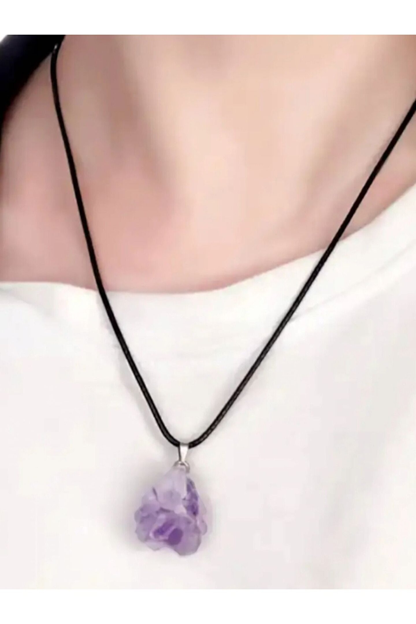 DOĞAL TAŞ CENNETİ AMETİST DOĞAL TAŞ KOLYE UCU (SERTİFİKALI)(DERİ İPLİ)