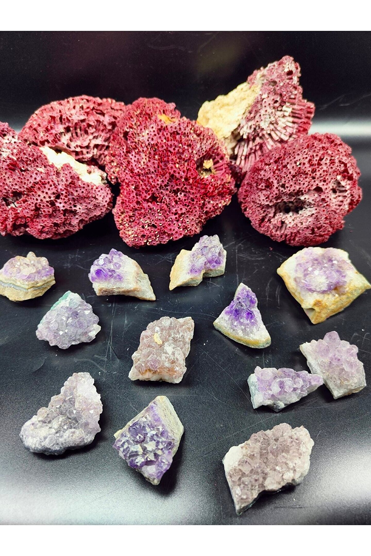 ÜRÜN AĞIRLIĞI 30-45 GRAM ARASINDA OLUP 2x3 CM ÖLÇÜLERİNE SAHİPTİR.; ; SİPARİŞ DOĞRULTUSUNDA GÖRSELDE BULUNAN AMETİST KAYALARDAN STOK DURUMUNA GÖRE RASGELE GÖNDERİLECEKTİR.; ; -----ÖZELLİKLERİ----- -Doğal bir sakinleştiricidir.; ; -Ruhsal farkındalığı arttırır ve meditasyonu geliştirir.; ; -Strese karşı koruyucudur.; ; -Dinlendirici uyumayı, dinç kalkmayı sağlar.; ; -Kanser oluşumunu engeller.; ; -Kan şekerini dengeler.; ; -Sindirim sistemini düzenler.; ; -Ortamdaki olumsuz enerjiyi olumlu enerjiye çevirir.; ; -Zihin için oldukça etkilidir.; ; -Bedeni dinç tutar.; ; -Eklem ağrılarını tedavi ederek daha rahat hareket etmeyisağlar.; ; TÜM ÜRÜNLERİMİZ 30 YILLIK DOĞAL TAŞ ŞİRKETİMİZ TARAFINDAN VE DOĞALLIK SERTİFİKALARIYLA GELİR.;