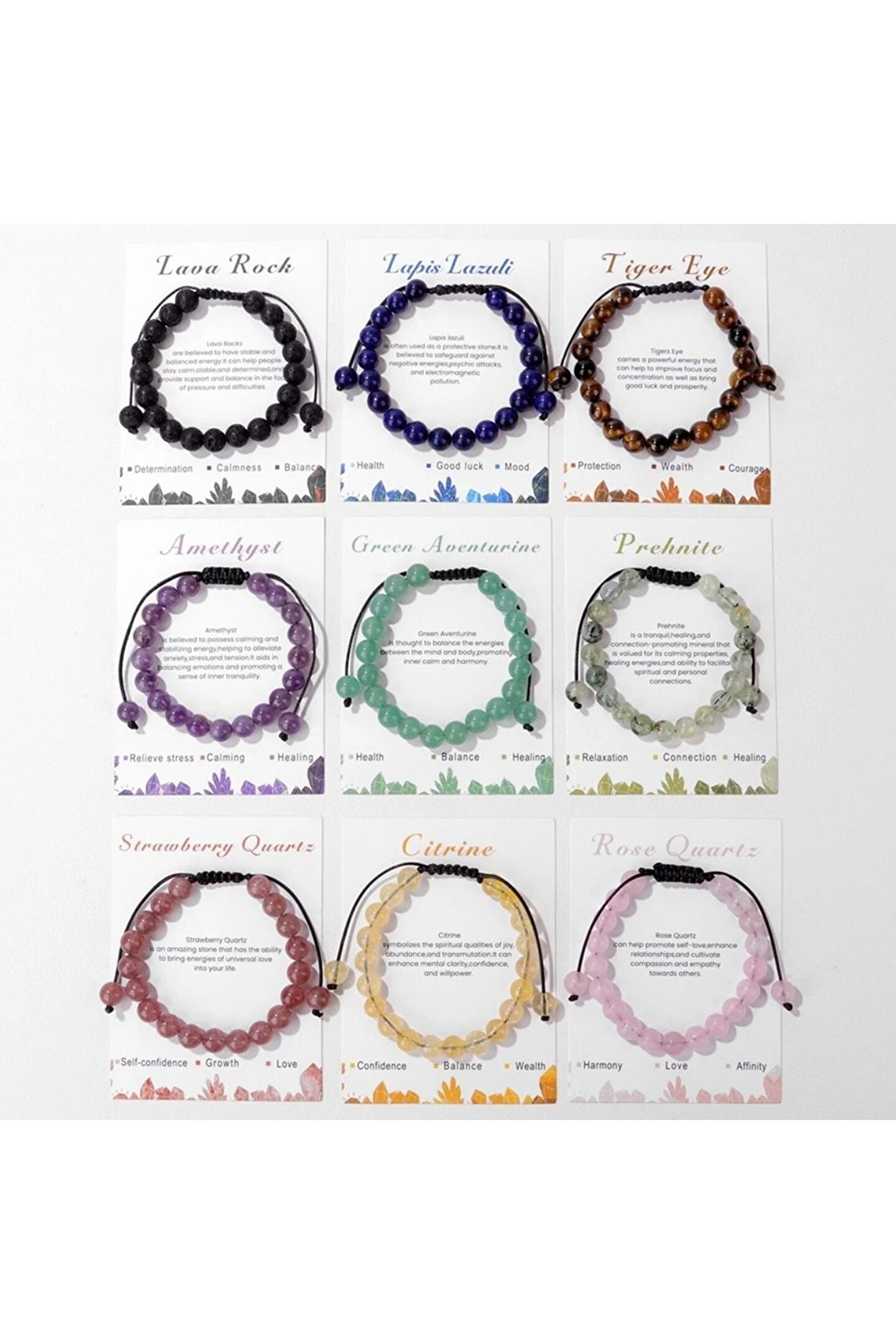 Doğal taş boncuklar kullanılarak üretilmiş, her bir bileklik benzersiz ve otantik bir görünüm sunar; 8mm boyutundaki taşlar, bileklikte zarif bir parlaklık ve estetik bir dokunuş sağlar; Ayarlanabilir yapısı sayesinde farklı bilek ölçülerine kolayca uyum sağlar ve rahat bir kullanım sunar; Hem kadınlar hem de erkekler için uygun tasarımıyla herkesin tarzına hitap eder; Özel örgülü halat detayı, bilekliğe modern ve şık bir görünüm kazandırırken dayanıklılığı arttırır;