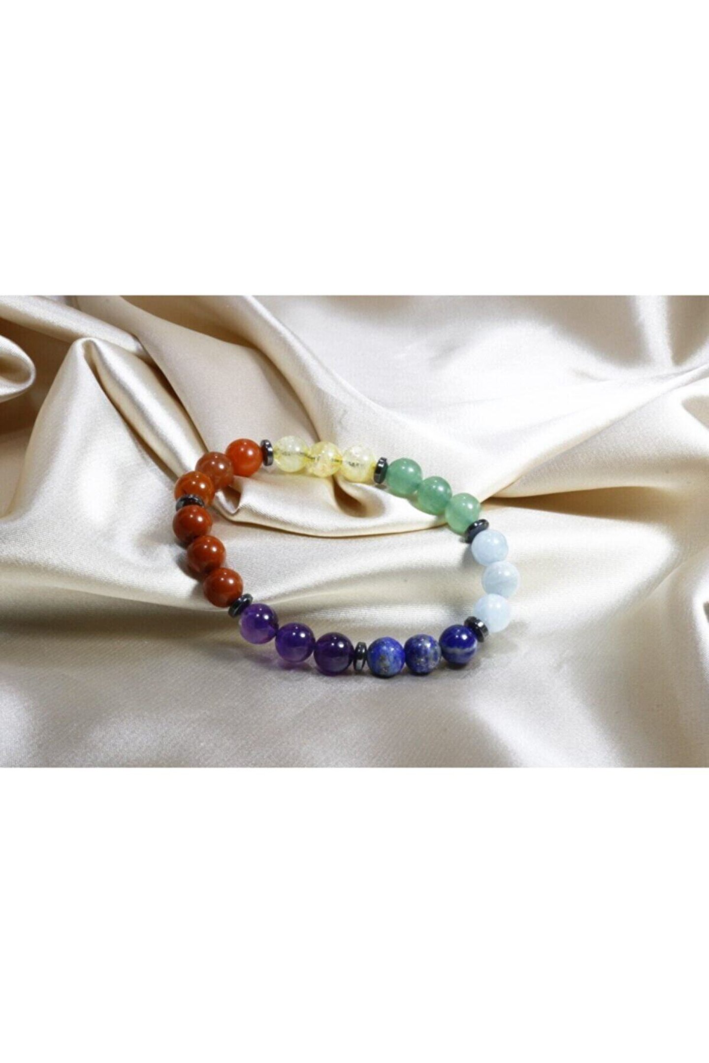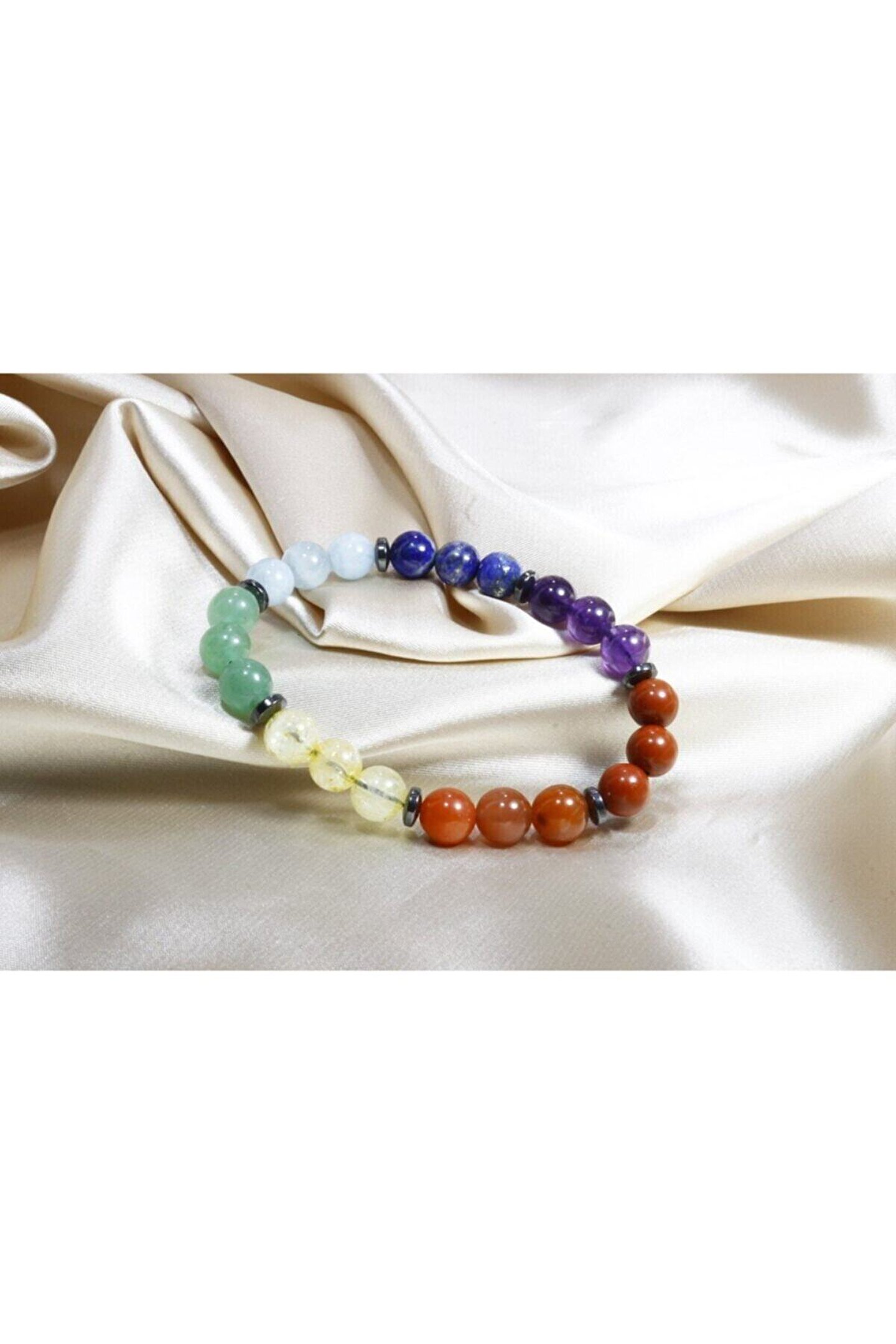 Hematit Detaylı Lüks Çakra Bileklik Çakra bileklik hiç bu kadar özel olmamıştı.; Çakraları temsilen seçilen 7 doğal taş özenle ve en kalitelilerinden seçilerek bir araya getirildi.; Akuamarin, Orijinal Yemen Akik gibi kaliteli taşlarında eklendiği Yeni Çakra Bileklik kaliteden ödün vermeden üretilmiş muhteşem bir doğal taş kombini oldu.; Lüks Çakra Bileklikte doğal taşlar Hematit dilimleri ile birbirinden ayrılarak Çakra Bileklik yeni bir yorumla karşınızda.; 7 Çakra - 7 Renk Doğal Taş özelliğini taşıması amacıyla yapılmış Çakra Doğal Taş Bileklik 7 Farklı doğal taş içerir.; (Kırmızı Jasper, Orijinal Yemen Akik taşı, Sitrin taşı, Aventurin taşı, Akuamarin taşı, Lapis taşı, Ametist taşı) Bileklik tane ebatları 8 mm'dir.; Taç Çakra - Mor - Ametist ; Göz Çakrası - Lacivert - Lapis Lazuli ; Boğaz Çakrası - Mavi - Akuamarin ; Kalp Çakrası - Yeşil - Aventurin ; Sinir Ağı Çakrası - Sarı - Sitrin ; Mide Çakra - Turuncu - Orijinal Yemen Akik ; Kök Çakra - Kırmızı - Jasper ; Tüm ürünlerimizle birlikte hem sevdiklerinizle birlikte gölgesinde mutlu anılar biriktirmenizi umduğumuz hem de doğanın korunmasına destek olmak amacıyla Çınar Ağacı Tohumugönderiyoruz.; Siz de ülkemizin ağaçlandırılması için bize katılın.; #doğayısevyeşilikoru #birağaçherşeyideğiştirebilir;