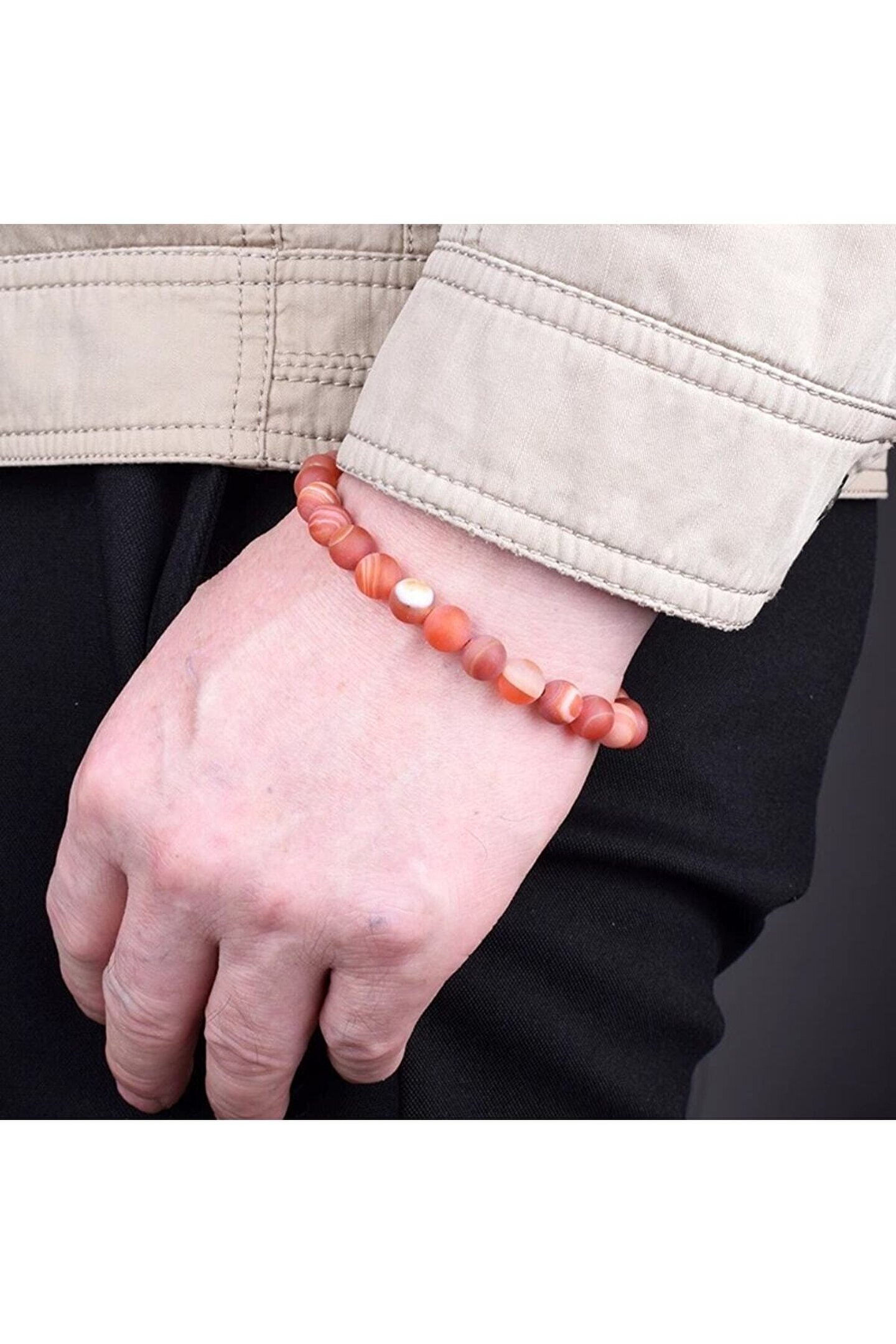 - Doğal akik taşı kullanılarak üretilmiş, şık ve zarif bir tasarıma sahip; - El yapımı olmasıyla benzersiz ve özgün bir görünüm sunar; - Çizgili deseniyle modern ve trend bir stil yaratır; - Bileklik, günlük kullanım için idealdir ve her türlü kıyafetle uyum sağlar; - Doğal taşların sıcaklığını yansıtan renk tonları, her ortamda dikkat çekici bir aksesuar oluşturur;