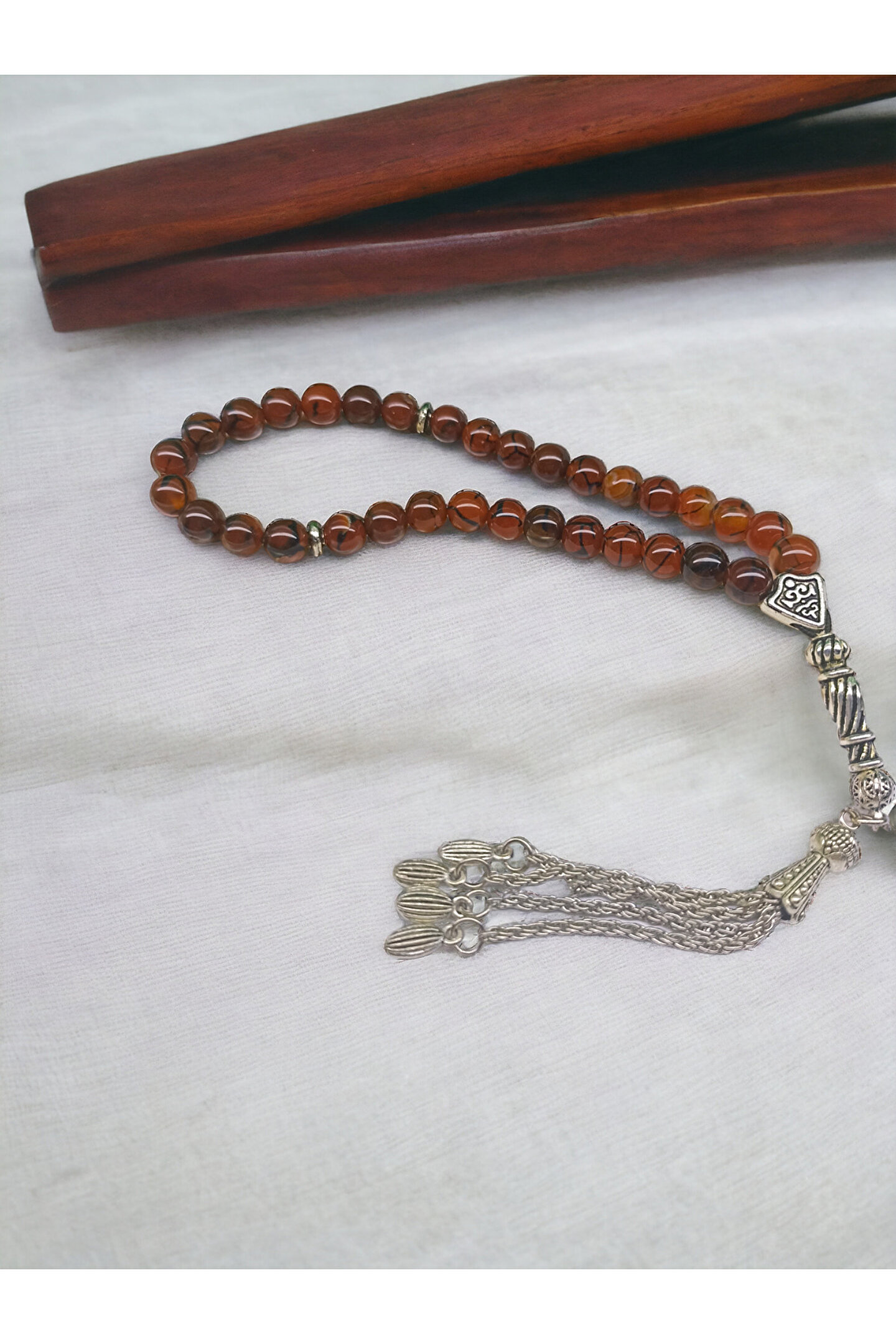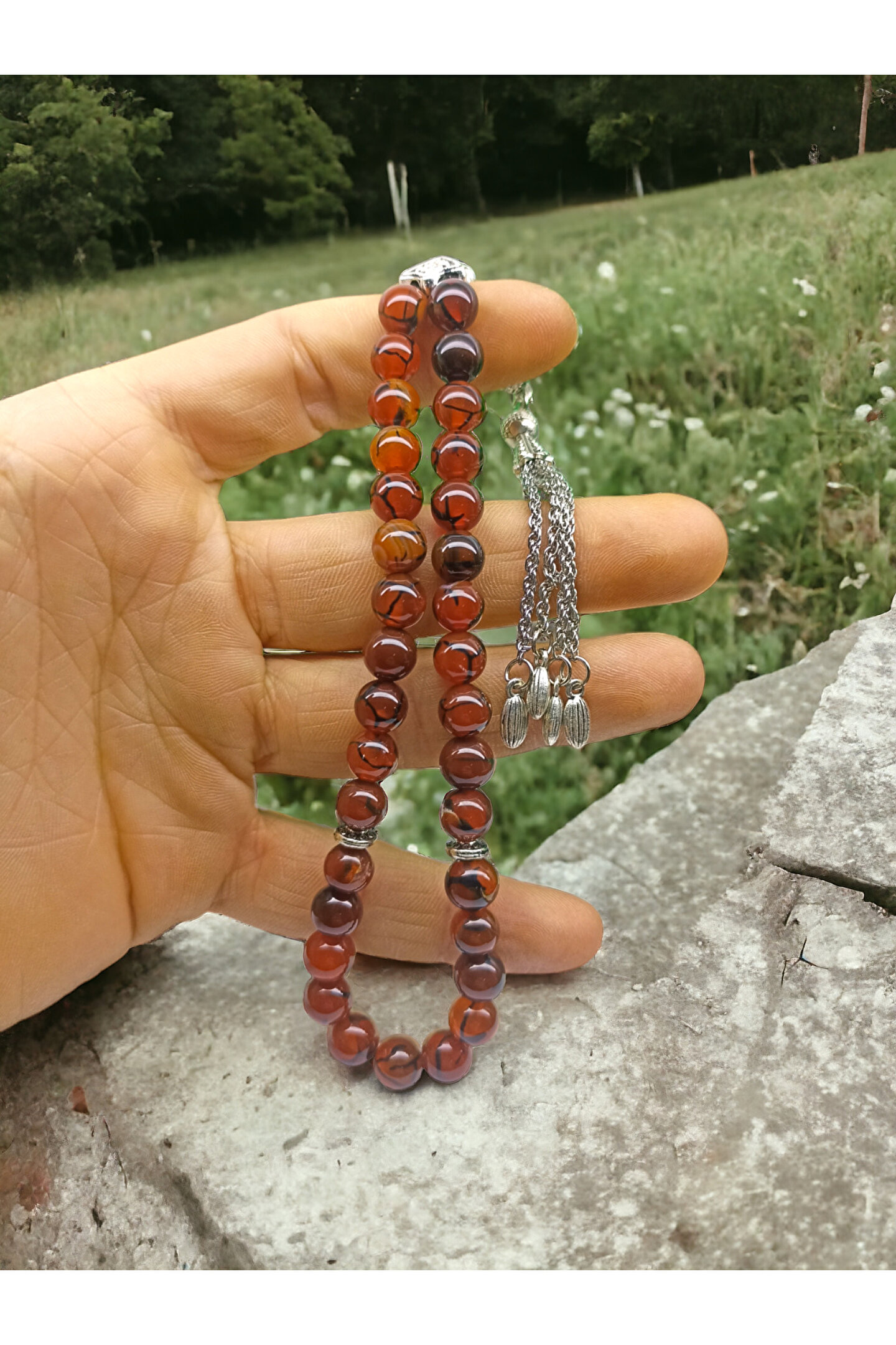 Doğal akik taşı kullanılarak üretilmiş, her bir tesbih tanesi özenle seçilmiş ve işlenmiştir; Sade ve şık tasarımıyla dikkat çeken düz desen, günlük kullanım için idealdir; Gümüş kaplama detayları ile zenginleştirilmiş, uzun ömürlü ve parlak bir görünüm sunar; Özel kutusunda sunulan sertifikalı ürün, kalite ve güvenilirliği garanti eder;