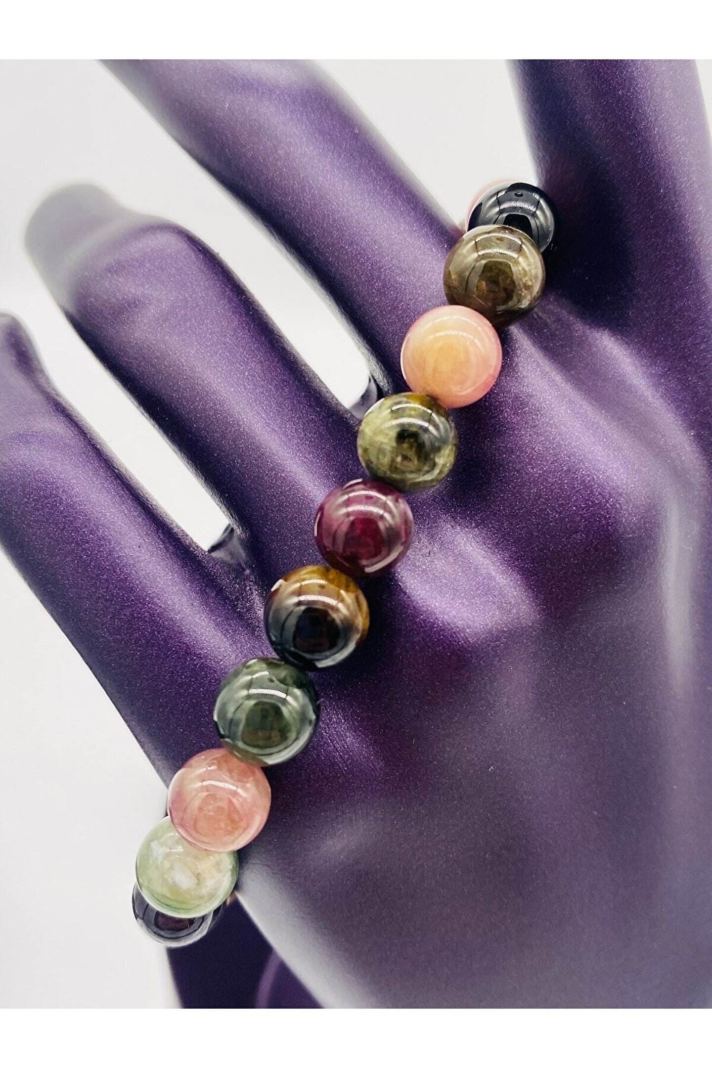 Doğal turmalin taşı ile tasarlanmış, şıklığı ve zarafeti bir arada sunan bileklik; Gençlerin enerjisine ve tarzına hitap eden, modern ve trend bir aksesuar; Doğal taş kullanımıyla her parça benzersiz ve özgün bir görünüm kazandırır;
