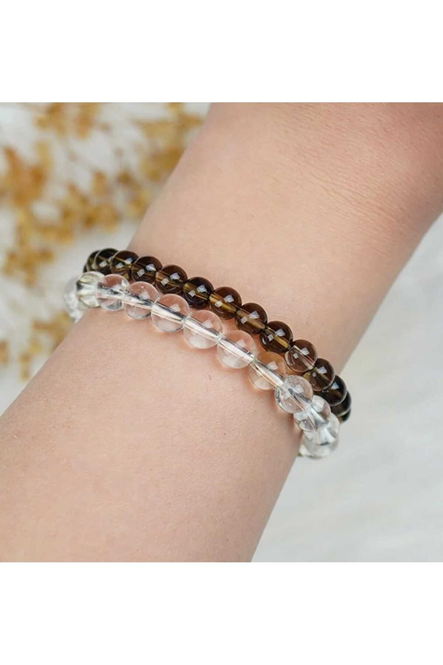Dogal Taş Bileklik Zihin Duruluğu Kristal Kuvars ve Sitrin Birlikteliği 6mm AA Kaliteli Kristal