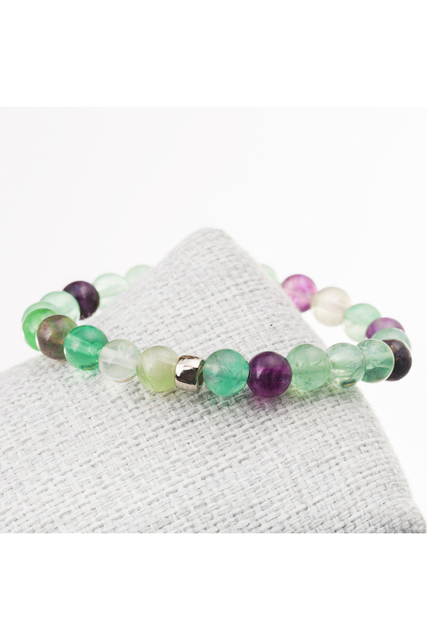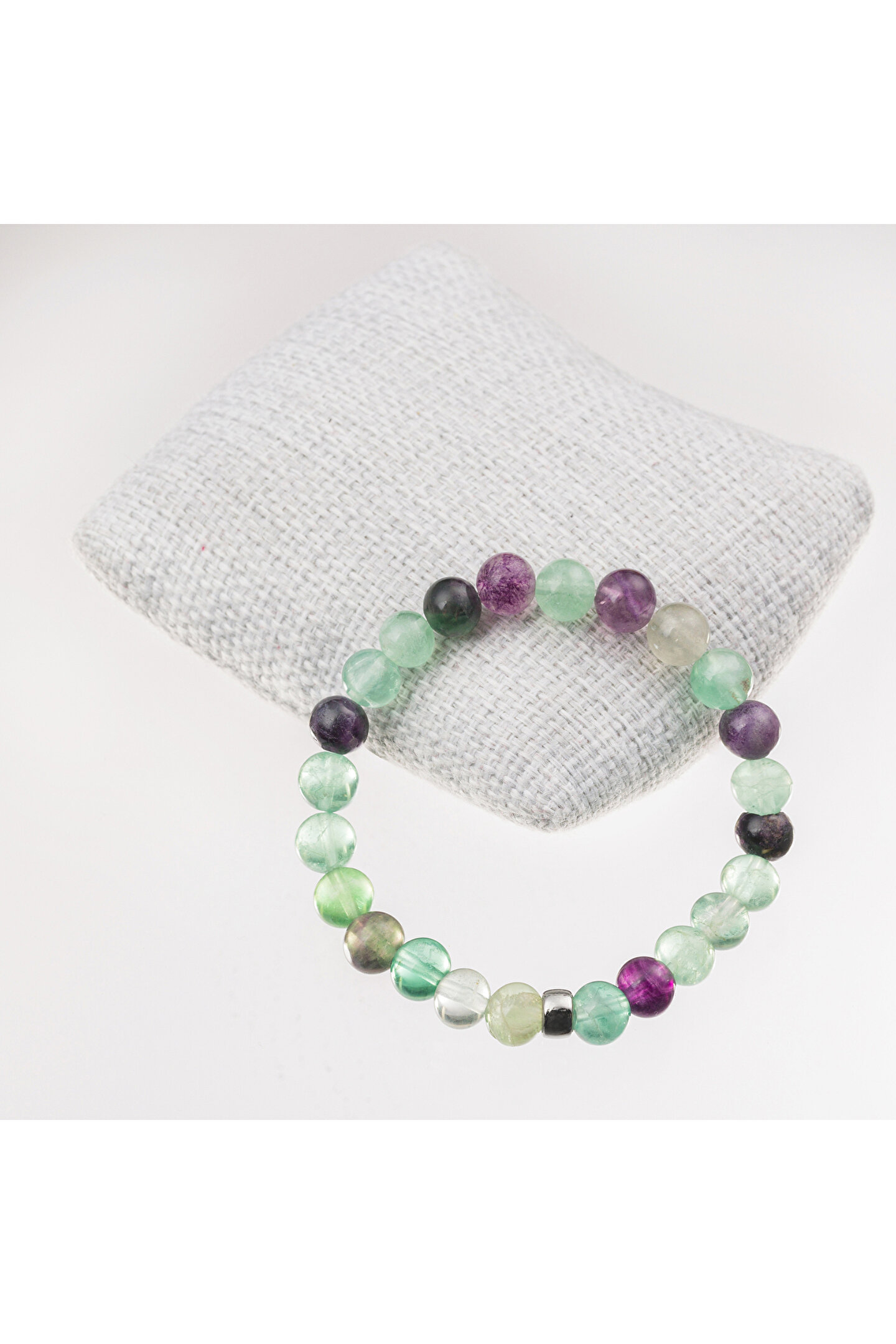 - Doğal Florit taşı kullanılarak üretilmiş, şıklığı ve zarafeti bir arada sunan bileklik; - 8 mm boyutundaki zarif tasarımıyla, her türlü kıyafetle kolayca uyum sağlar ve stilinizi tamamlar; - Doğal taş materyali sayesinde her bileklik benzersizdir ve doğanın eşsiz güzelliklerini bileğinizde taşımanızı sağlar; - Florit taşı, renk değiştirme özelliği ile ışığı farklı açılardan algılayarak göz alıcı bir parıltı sunar;