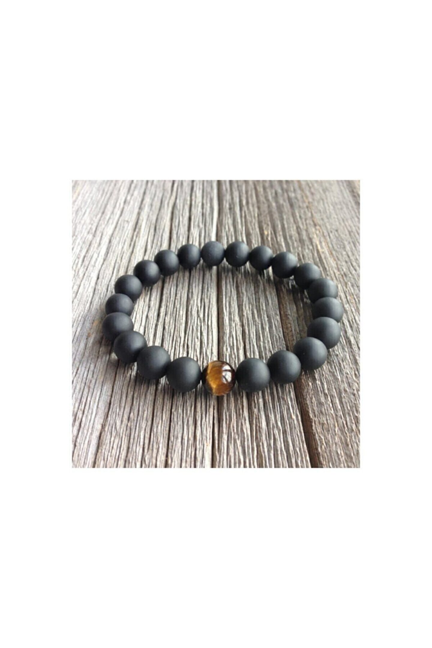 Gerçek Siyah Mat Oniks Kaplan Gözü Doğal Taş Bileklik