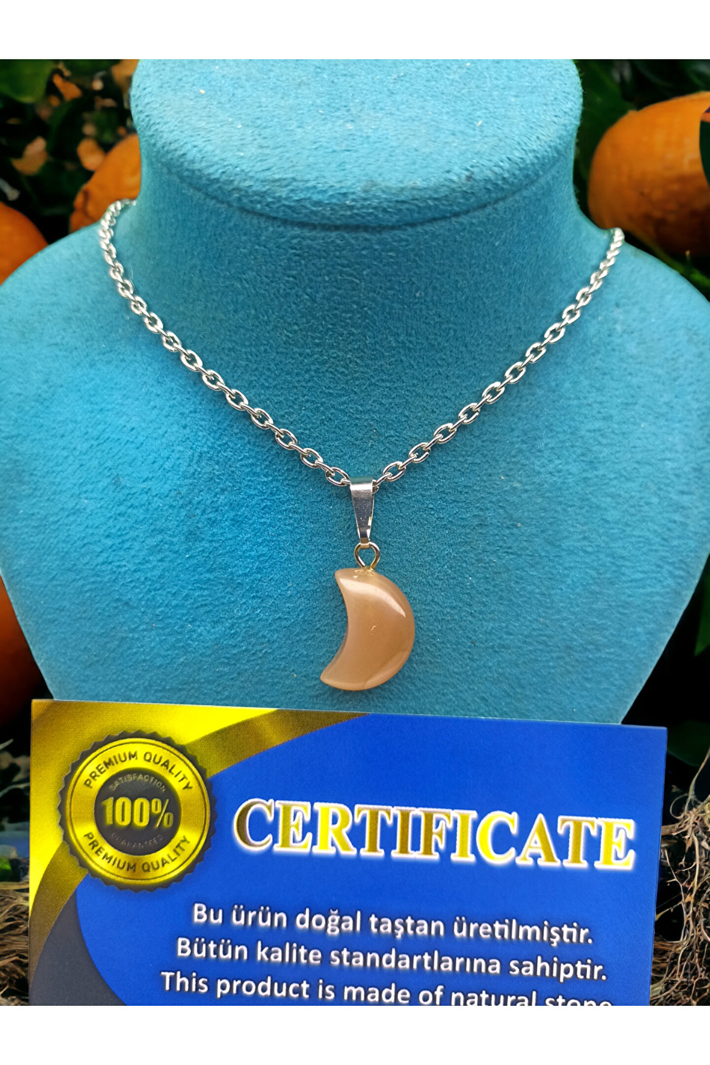 Saf doğal taş kullanılarak üretilmiş, her bir kolye ucu benzersiz ve otantik bir görünüm sunar; Güneş taşı, kolye ucu olarak seçilerek hem şıklığı hem de enerjiyi yansıtır; Sertifikalı ürün olması, kalite ve güvenilirlik açısından önemli bir güvence sağlar; Doğal taşın eşsiz dokusu ve renk tonları, her kıyafetle uyum sağlayarak kişisel tarzınıza zarif bir dokunuş ekler;