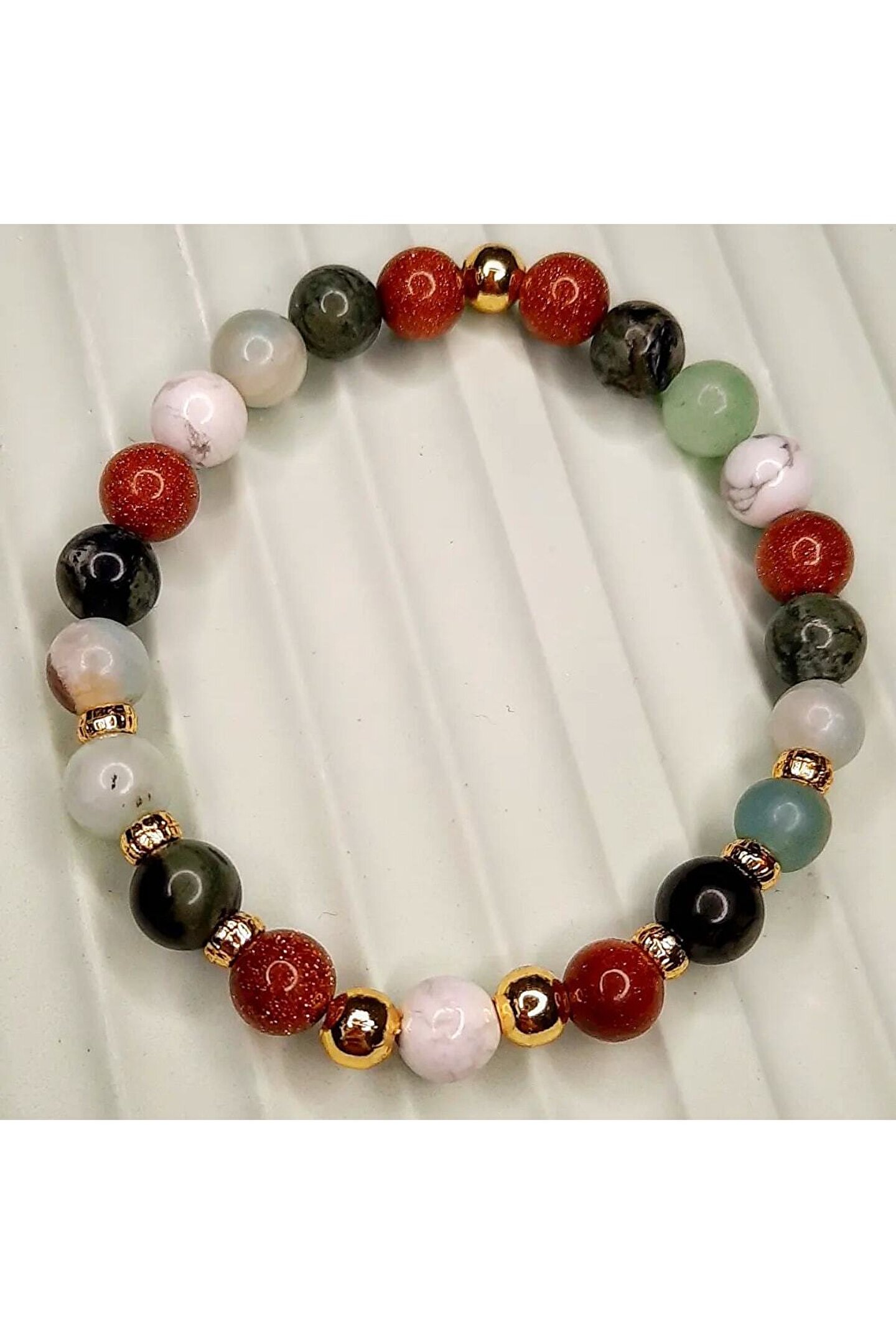 - Doğal taş bileklik, şıklığınızı tamamlayacak zarif bir aksesuardır; - Yıldız taşı ve havlit jasper gibi özel doğal taşlar kullanılarak üretilmiştir, bu da her bilekliğe benzersiz bir karakter katar; - Amazonit taşı, bilekliğe canlı ve göz alıcı bir parlaklık kazandırırken, havlit jasper ise dayanıklılığı ve estetiği bir arada sunar; - Doğal taş materyali sayesinde her bileklik, doğanın saf güzelliğini parmaklarınıza taşır;