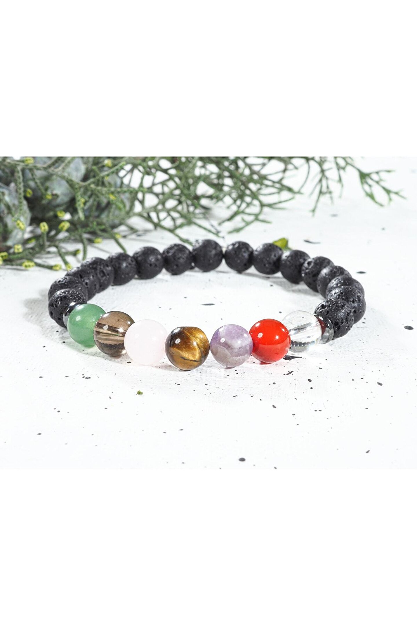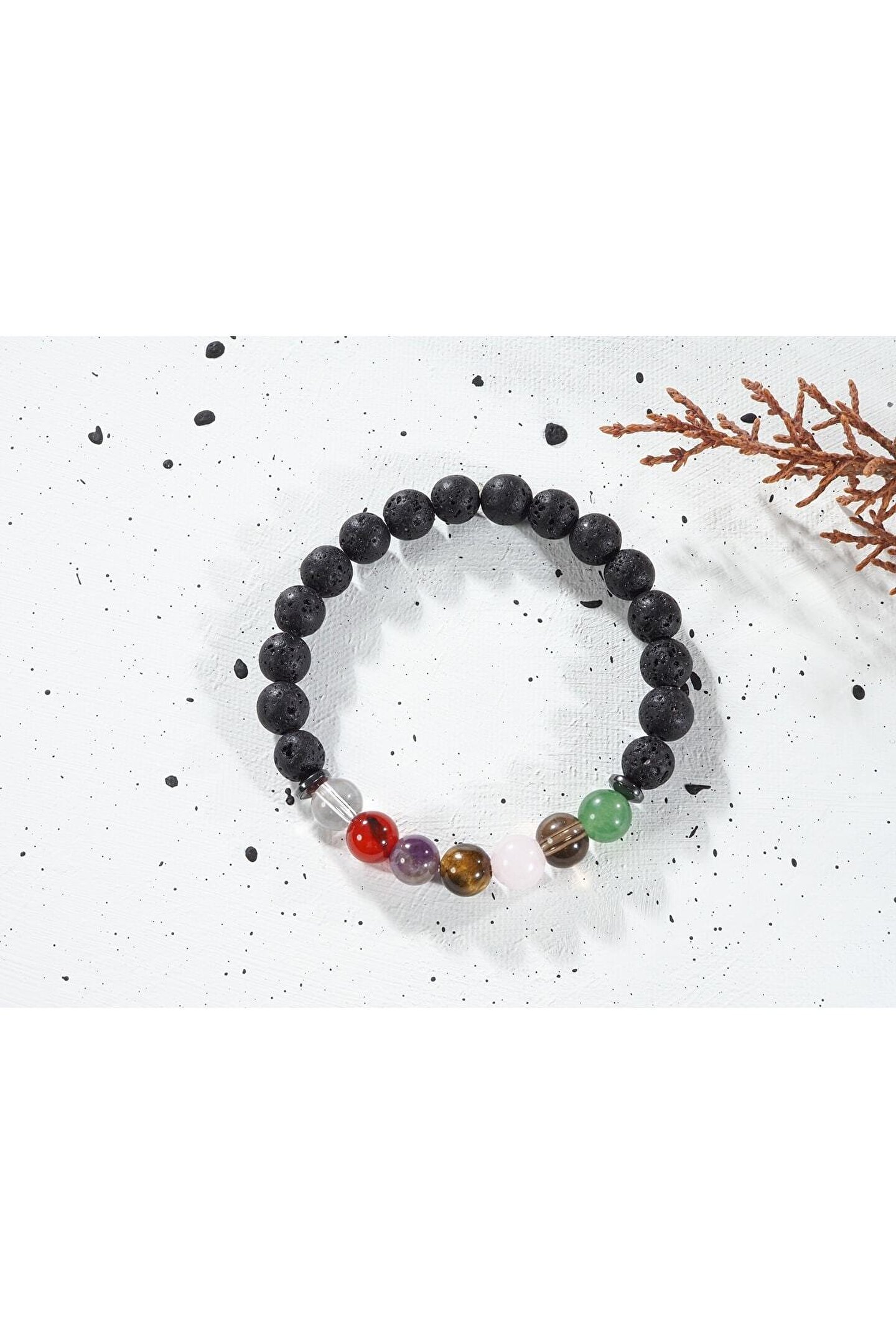 Çakra doğal taşları unisex bileklik 8mm Çakra doğal taşları unisex bileklik; Elastik özel bir ip kullanılarak el emeği ile üretilmektedir.; Kullanılan malzemeler sayesinde dirençlidir.; ; Çakra doğal taşlarının özdeşleştiği çakra: Bedenimizdeki 7 çakrada yasam enerjimiz sürekli bir akıştadır.; Çakralardaki dengesizlik, tıkanıklık, fiziksel ve ruhsal olarak hastalıklara sebep olur.; Ruhsal gelişimde çakralardaki enerji akışının sağlıklı olmasıyla bağlantılıdır.; ; ; Lav taşı bünyesindeki başlıca mineraller: Demir, çinko, magnezyum, potasyum ve kalsiyum ; Lav taşı özdeşleştiği çakra: Tüm çakralar ; ; Hematit bünyesindeki başlıca mineraller: Titanyum, demir, magnezyum ve oksijen + eser miktarda krom, manganez, silisyum, su ve toryum ; Hematit özdeşleştiği çakra: Kök (kuyruk sokumu) ;