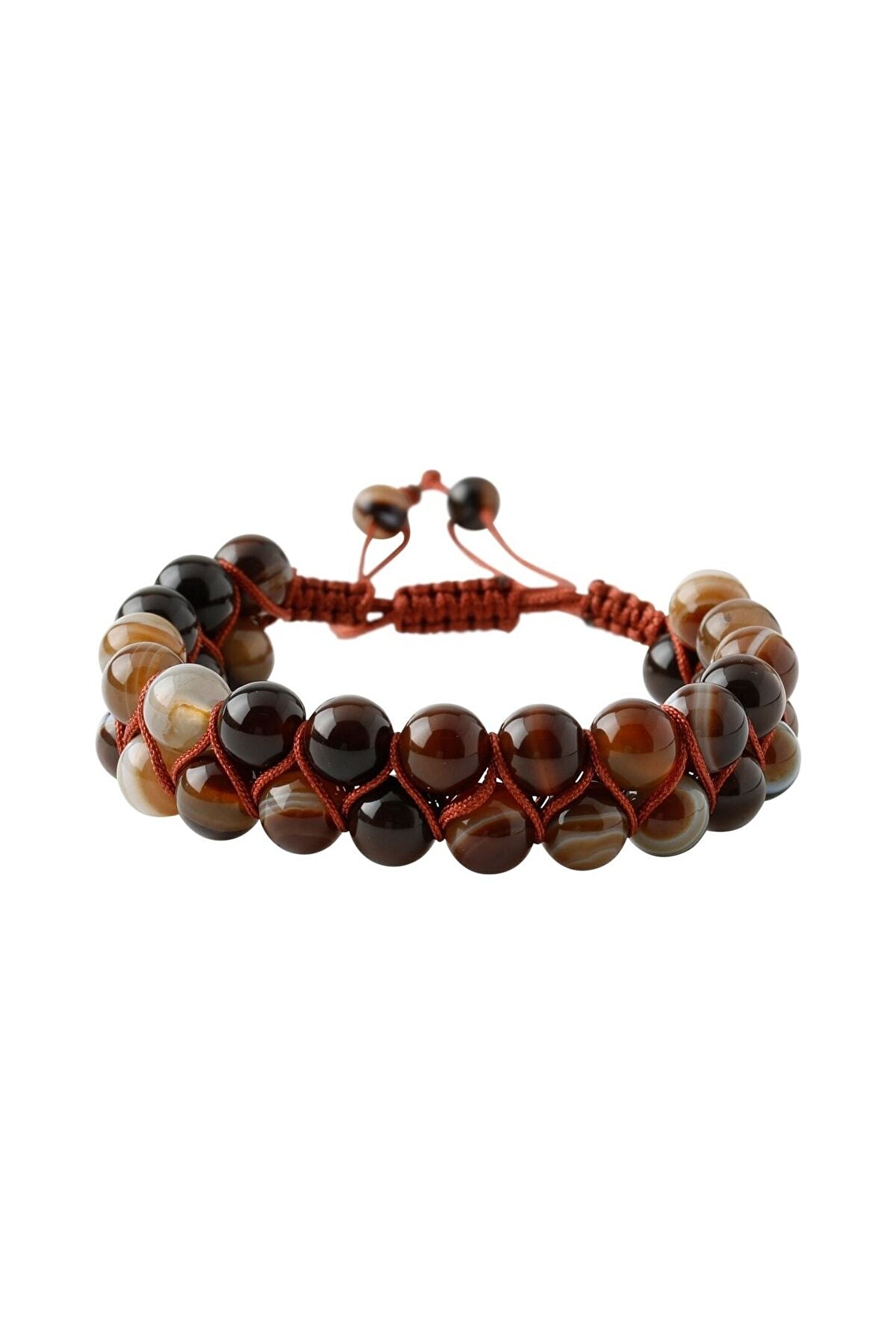 Kahve Göz Akik 8mm Çift Sıra Makrome Doğal Taş Bileklik