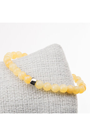Doğal kalsit taşı kullanılarak üretilmiş, şıklığı ve doğallığı bir arada sunan bileklik; 6 mm kalınlığındaki zarif tasarımıyla, bileğinizde rahat bir kullanım sağlar; Her bir bileklik, benzersiz desen ve renk tonlarıyla dikkat çeker, kişisel tarzınıza özgün bir dokunuş katar; Doğal taş materyali sayesinde her kullanımda farklı bir deneyim sunar ve uzun ömürlüdür;